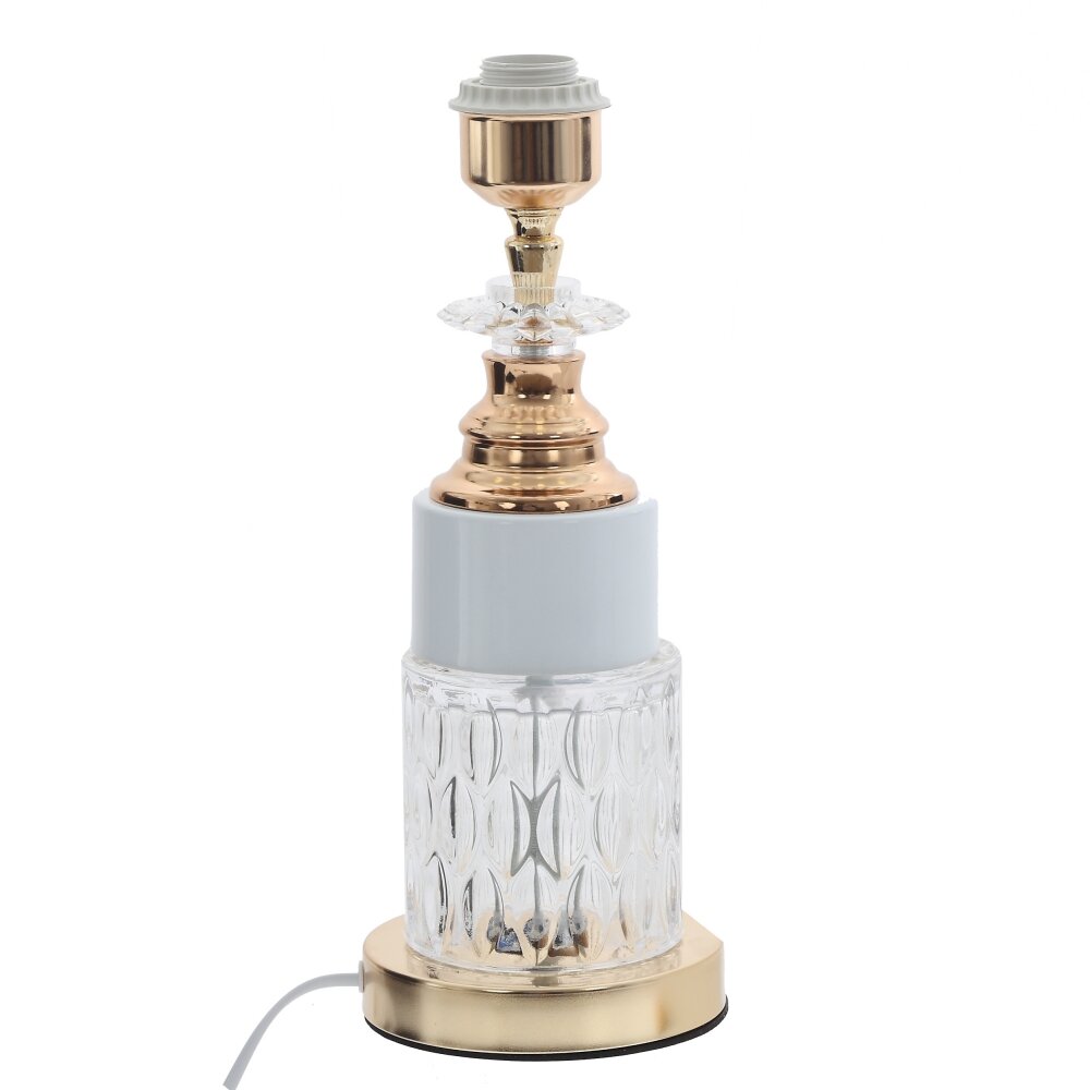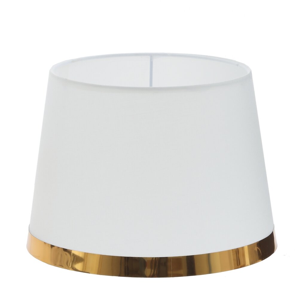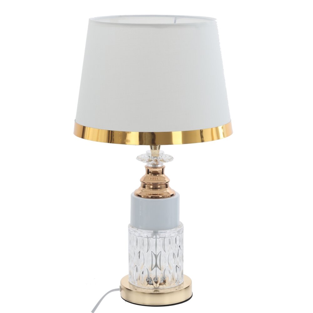 Элегантный настольный светильник станет изысканным акцентом в интерьере спальни, гостиной или кабинета. Классический конусный абажур мягкого белого цвета украшен тонкой золотистой окантовкой, что придаёт модели утончённый, почти гостиничный шарм. Основание выполнено в виде цилиндра, дополненного глянцевыми металлическими деталями тёплого золотого оттенка и декоративным кристаллическим элементом. Светильник даёт комфортный рассеянный свет, идеально подходящий для чтения и вечернего отдыха. Длина шнура 1,05 м обеспечивает удобное подключение к розетке без удлинителя. Подходит для любых ламп Е27 (LED, энергосберегающих или накаливания) нужной мощности.