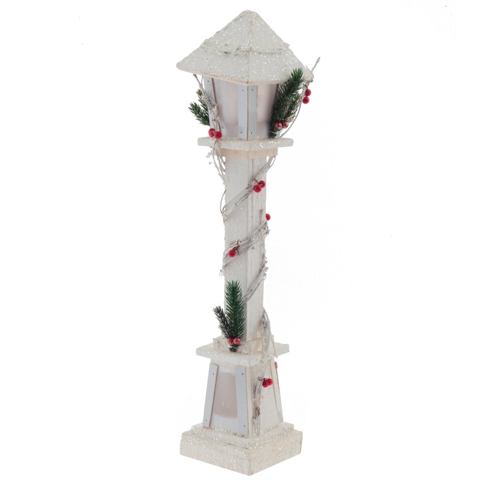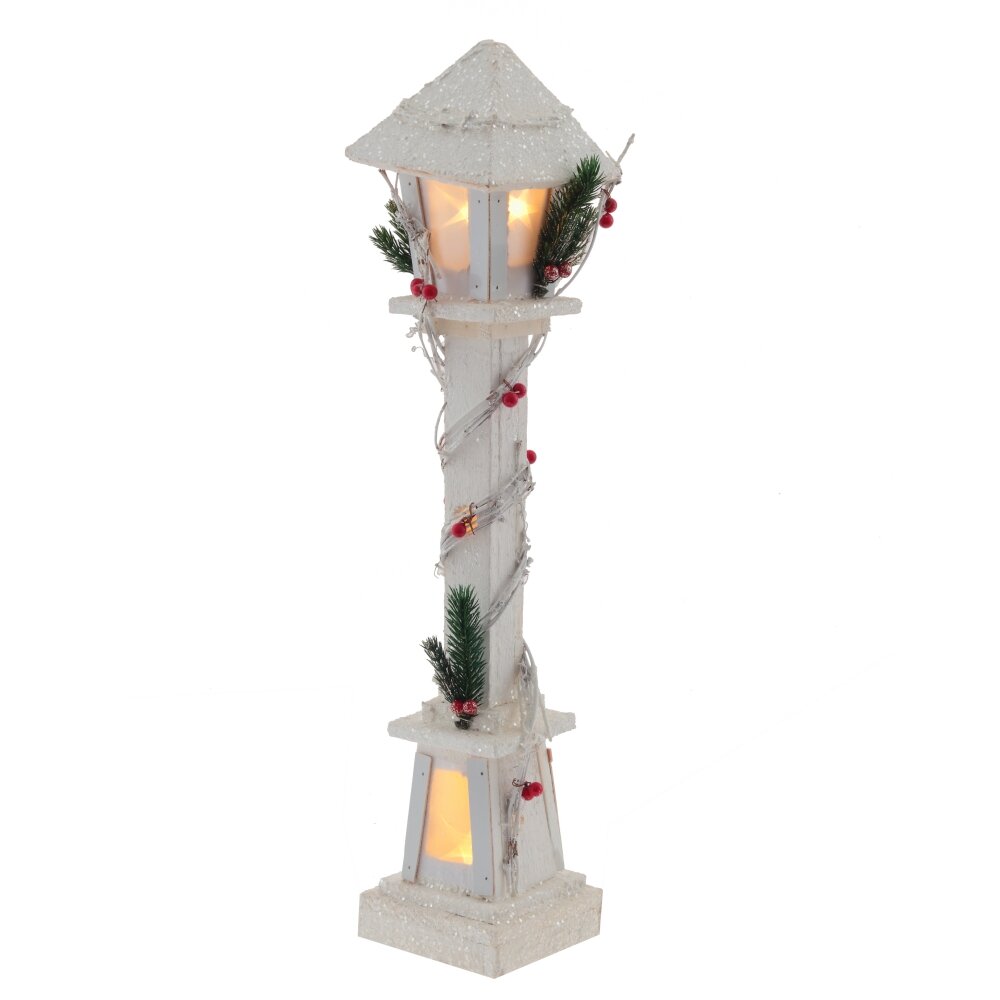Новогодний деревянный фонарь с подсветкой, украшенный хвойными искусственными ветками станет отличным дополнением праздничного интерьера и поможет создать атмоферу доброй сказки в вашем доме. Работает от двух батареек АА (не прилагаются).