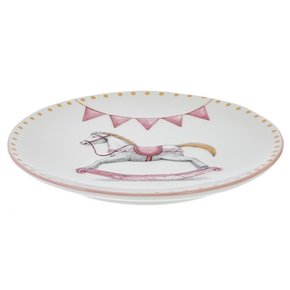 Керамическая тарелка с изображением лошадки-качалки — это не просто предмет сервировки, а настоящее украшение стола. Очаровательный рисунок с лошадкой вызывает ассоциации с детством, теплом и уютом, создавая особую атмосферу за каждым приёмом пищи. Изготовленная из прочной керамики, тарелка идеально подходит для подачи завтраков, десертов, выпечки или фруктов. Поверхность гладкая, легко очищается, а качественная глазурь сохраняет яркость рисунка надолго. Такая посуда особенно уместна в сервировке праздничного или детского стола, а также может использоваться как декоративный элемент интерьера. Прекрасно подойдёт в подарок на Новый год, день рождения или просто как приятный сувенир.