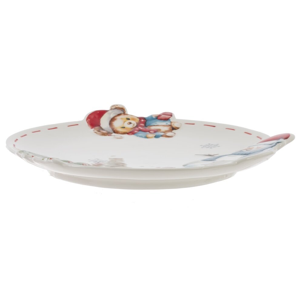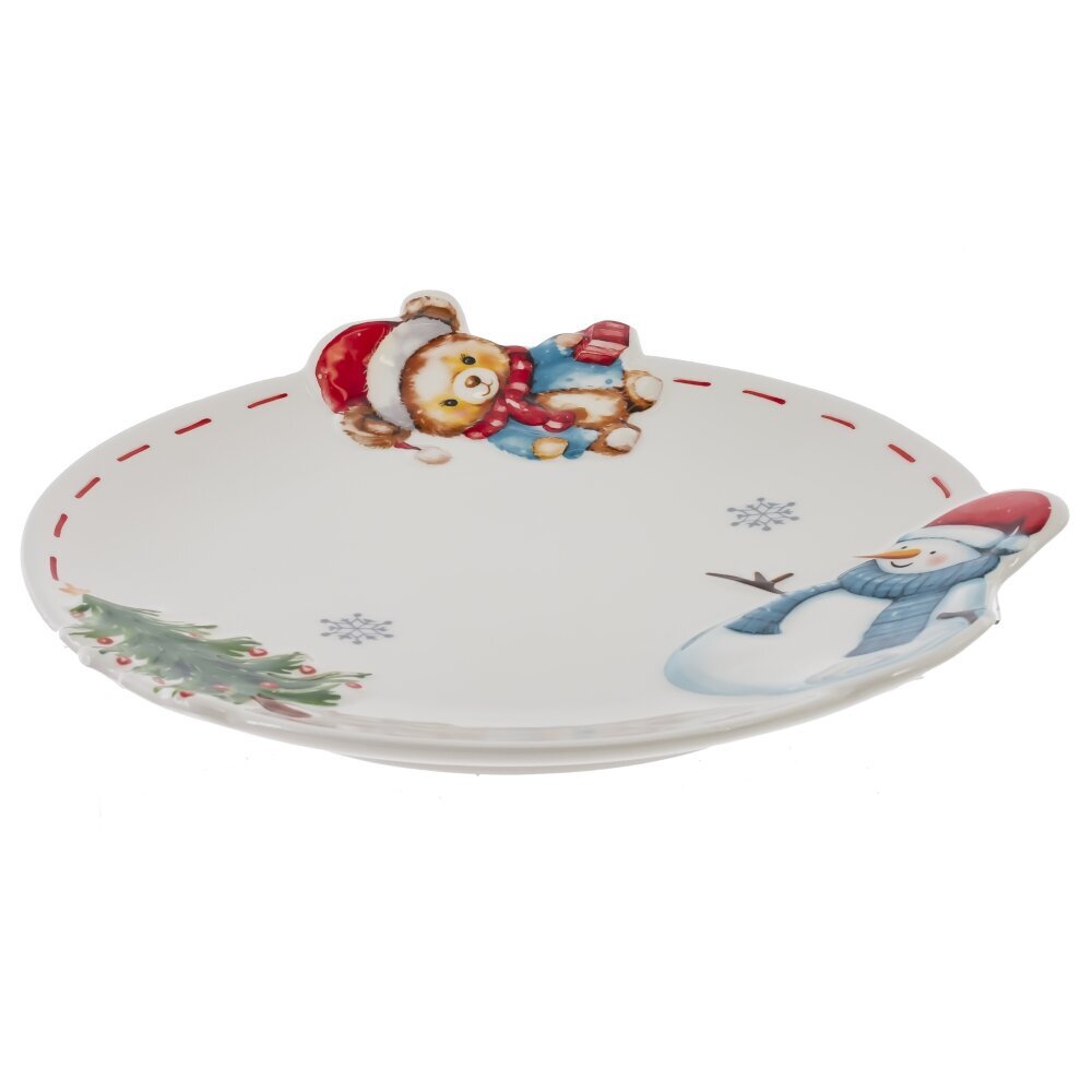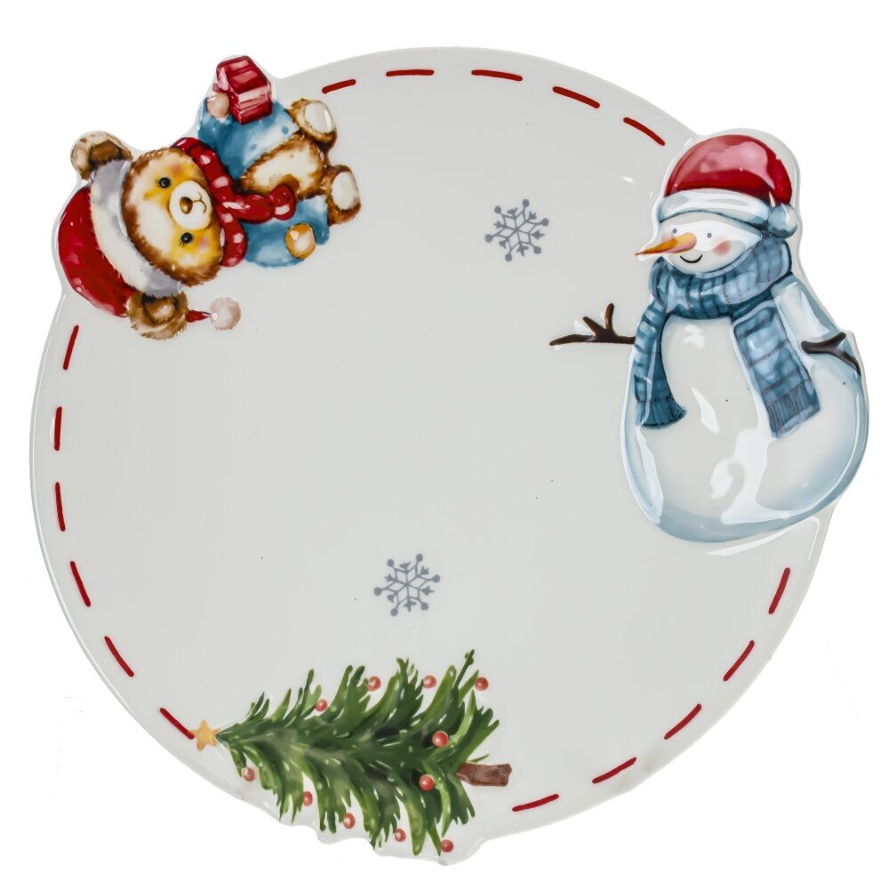 Круглая тарелка “Веселый Новый год” из керамики - милый и праздничный элемент вашего новогоднего стола. Рельефное изображение плюшевого мишки, снеговика и мини елочки добавляет тарелке очарования, а красная пунктирная кайма - праздничной нарядности. Сертифицированный и безопасный для контакта с пищевыми продуктами. Подарите себе и своим близким атмосферу праздника!