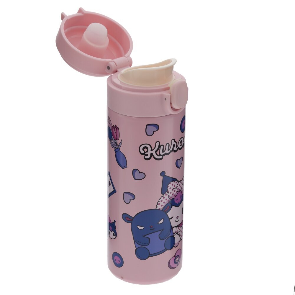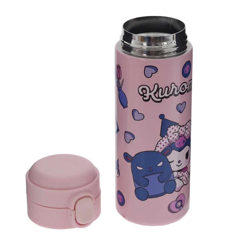 Стильный детский термос объёмом 380 мл с милым принтом Kuromi станет незаменимым спутником в школе, на прогулке или во время путешествий. Внутренняя колба выполнена из коррозионностойкой стали, которая хорошо держит температуру напитка и не впитывает запахи. Корпус из прочных полимерных материалов устойчив к ударам и лёгким царапинам, удобно лежит в руке и не скользит. Надёжная герметичная крышка с кнопкой защищает от протеканий и позволяет пить прямо из термоса. В комплект входит текстильная сумочка с длинным ремешком и ручками, украшенная тем же ярким рисунком, — её удобно носить на плече или в руке, а также подвешивать к коляске или рюкзаку. Такой набор подарит ребёнку хорошее настроение и поможет всегда иметь тёплый напиток под рукой.