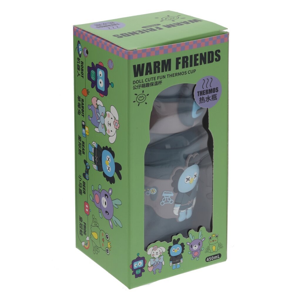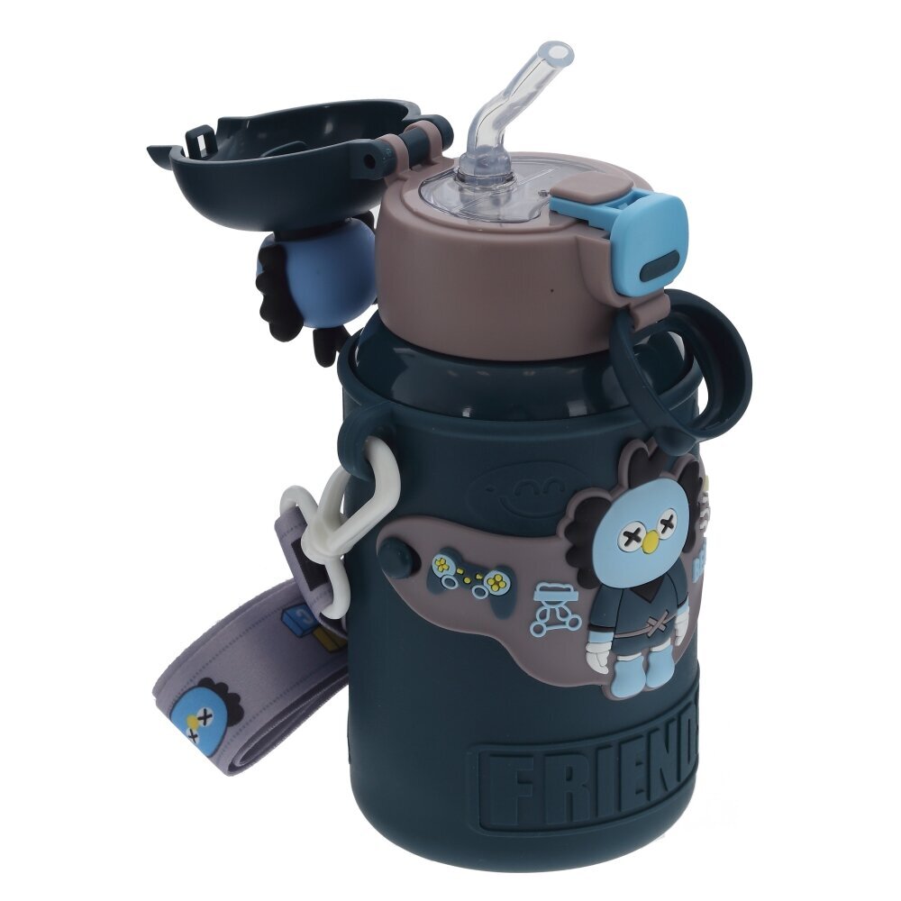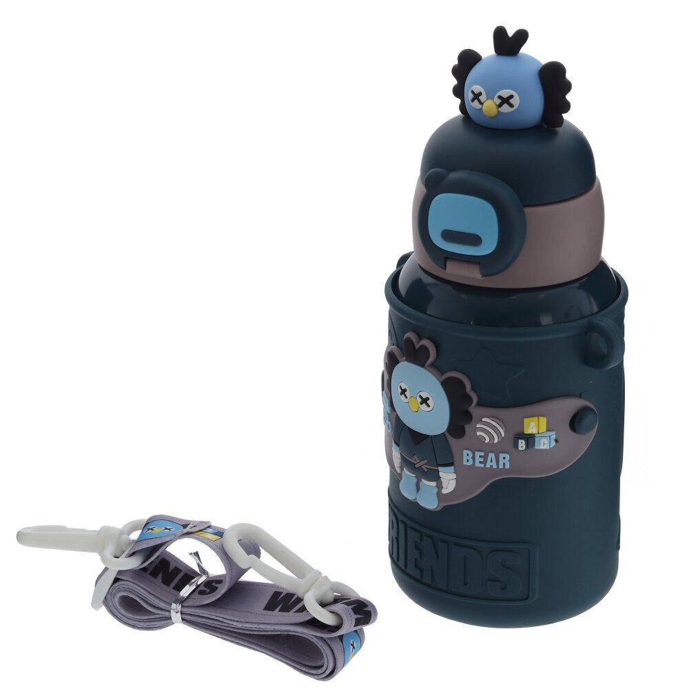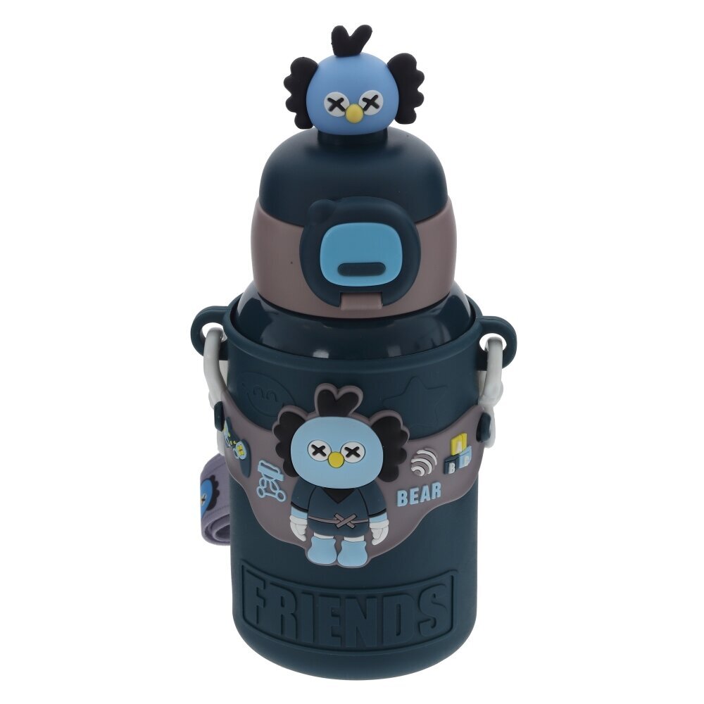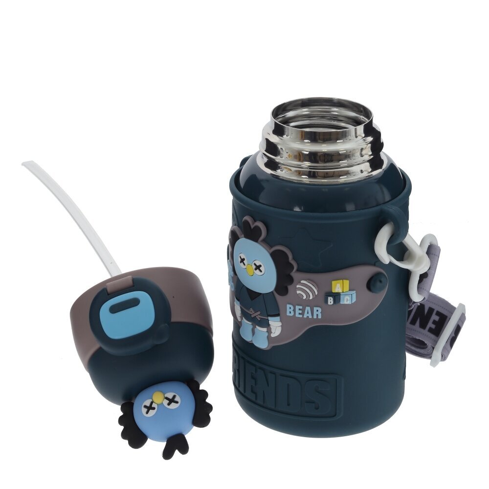 Детский термос объёмом 480 мл станет незаменимым спутником на прогулке, в садике или школе. Корпус выполнен из коррозионностойкой стали с ярким мягким чехлом из полимерных материалов, который защищает колбу от ударов и делает термос приятным на ощупь. Милый фигурный персонаж и надпись FRIEND создают веселый дизайн, который обязательно понравится ребенку. Крышка открывается нажатием кнопки и оснащена прозрачной поильной трубочкой — пить удобно даже в дороге, не проливая напиток. Плотный замок предотвращает случайное открывание в сумке или рюкзаке. Широкий ремешок с регулировкой длины позволяет носить термос через плечо или в руках. Подходит для горячих и холодных напитков, долго сохраняет их температуру и не впитывает запахи. Отличный практичный подарок для активных детей.