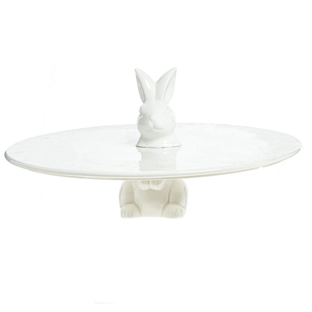 Оригинальная тортница в виде белоснежного фарфорового зайца. Изделие символизирует уют, гостеприимство и заботу. Изделие добавит особое очарование и изысканность в ваш интерьер. Подходит для сервировки торта, пирожных, фруктов. Блюдо крепится на клей с двух сторон. Комплектация: две части фигурки, блюдо, клей.