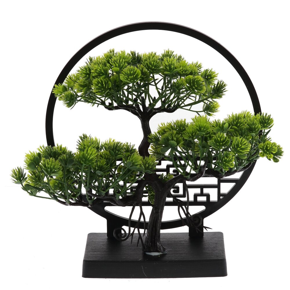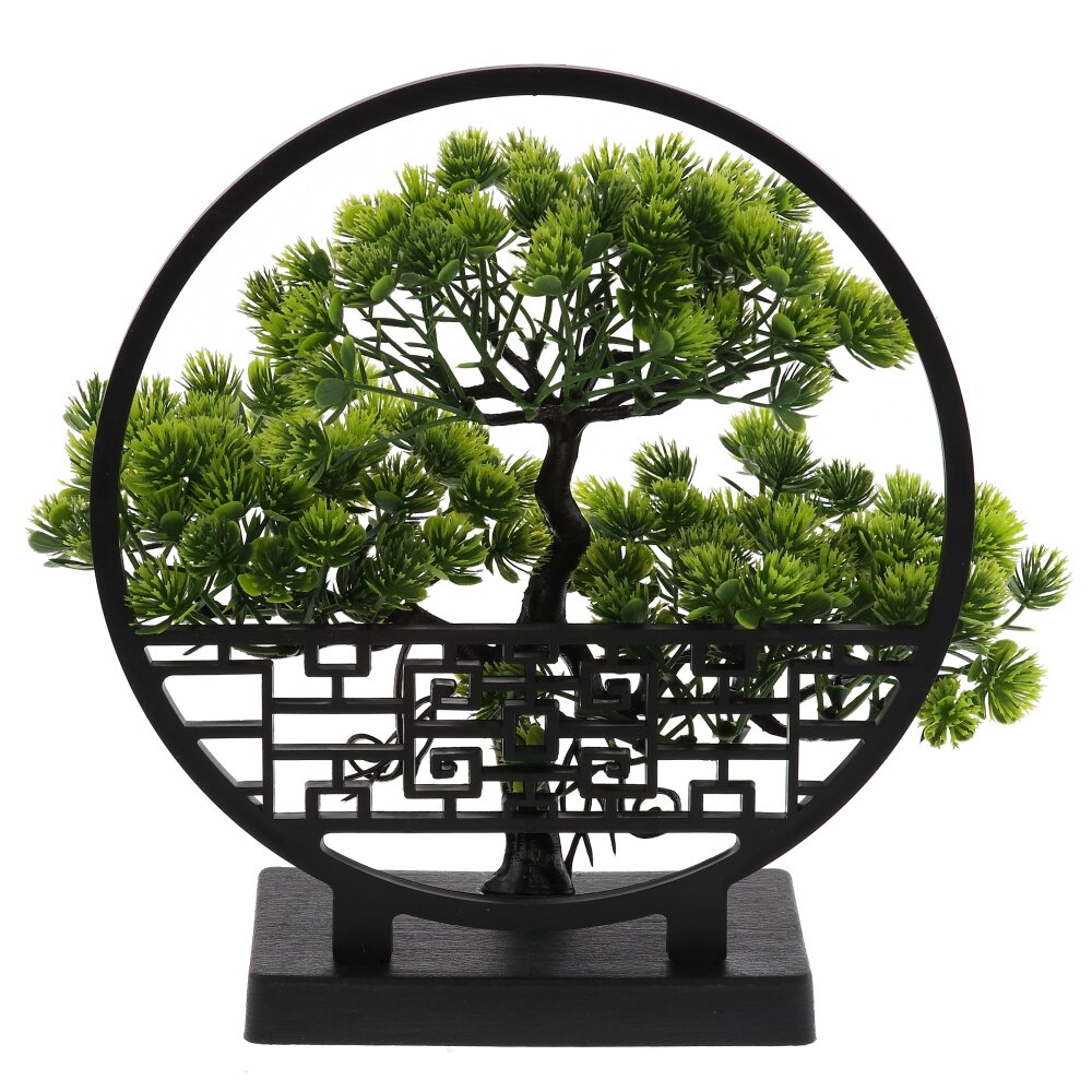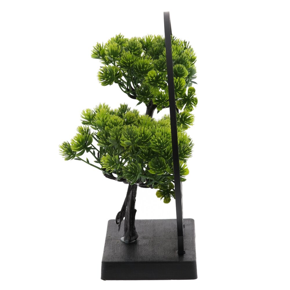 Искусственная цветочная композиция «Бонсай» — стильный акцент для современного интерьера. Компактное деревце с густой зелёной кроной выполнено из качественного пластика, точно имитирующего живую хвою и фактуру ствола. Декор закреплён на устойчивой прямоугольной подставке и обрамлён изящным круглым каркасом с восточным орнаментом, что придаёт композиции завершённый, гармоничный вид. «Бонсай» не требует полива и особого ухода, не выгорает на солнце и надолго сохраняет сочный цвет. Идеально подходит для оформления гостиной, кабинета, спальни, приёмной или зоны ожидания, создавая атмосферу уюта и спокойствия.