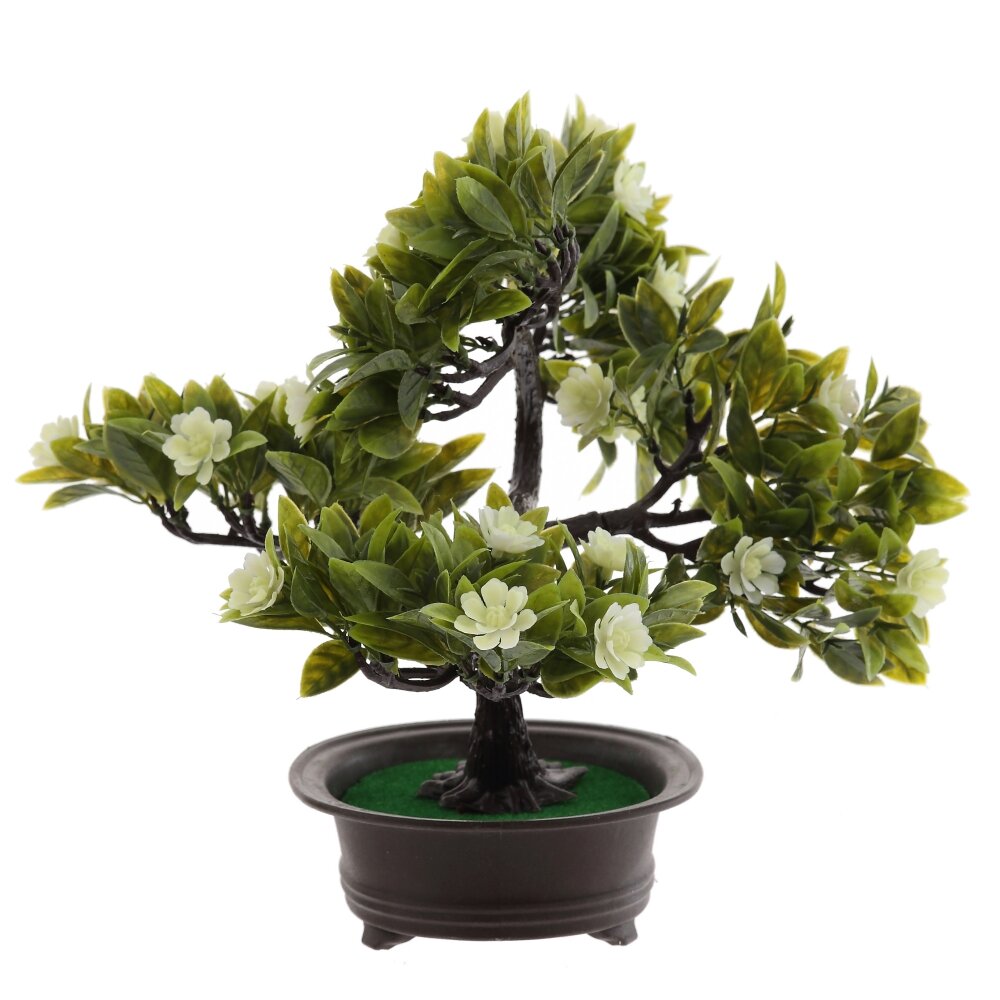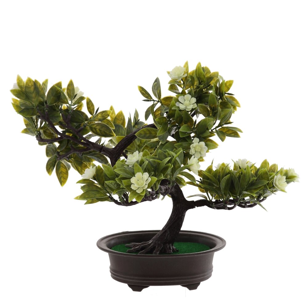 Цветочная искусственная композиция «Бонсай» – элегантный акцент для интерьера дома или офиса. Реалистично выполненный ствол с изящными изгибами и густая крона из зелёных листьев создают эффект живого дерева, а нежные светлые цветы придают композиции свежесть и лёгкость. Компактный бонсай установлен в устойчивое тёмное кашпо, которое подчёркивает природную красоту растения и легко вписывается в любой стиль оформления: от классики до минимализма. Композиция не требует полива, освещения и особого ухода, не осыпается и надолго сохраняет первоначальный вид. Достаточно периодически протирать листья от пыли. Искусственный бонсай станет удачным решением для тех, кто ценит уют и гармонию, но не имеет возможности ухаживать за живыми растениями. Подойдёт для оформления гостиной, спальни, прихожей, рабочего стола, ресепшена, витрины или кафе, создавая атмосферу спокойствия и уюта.