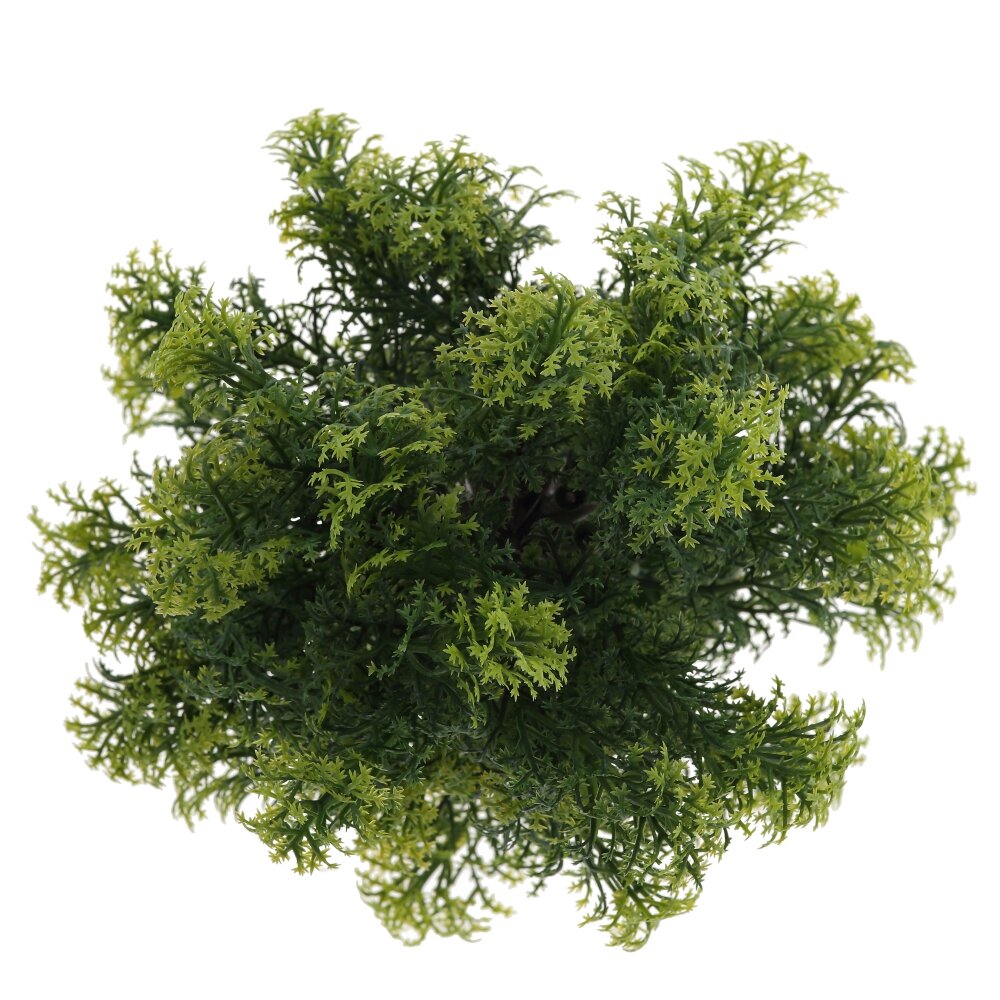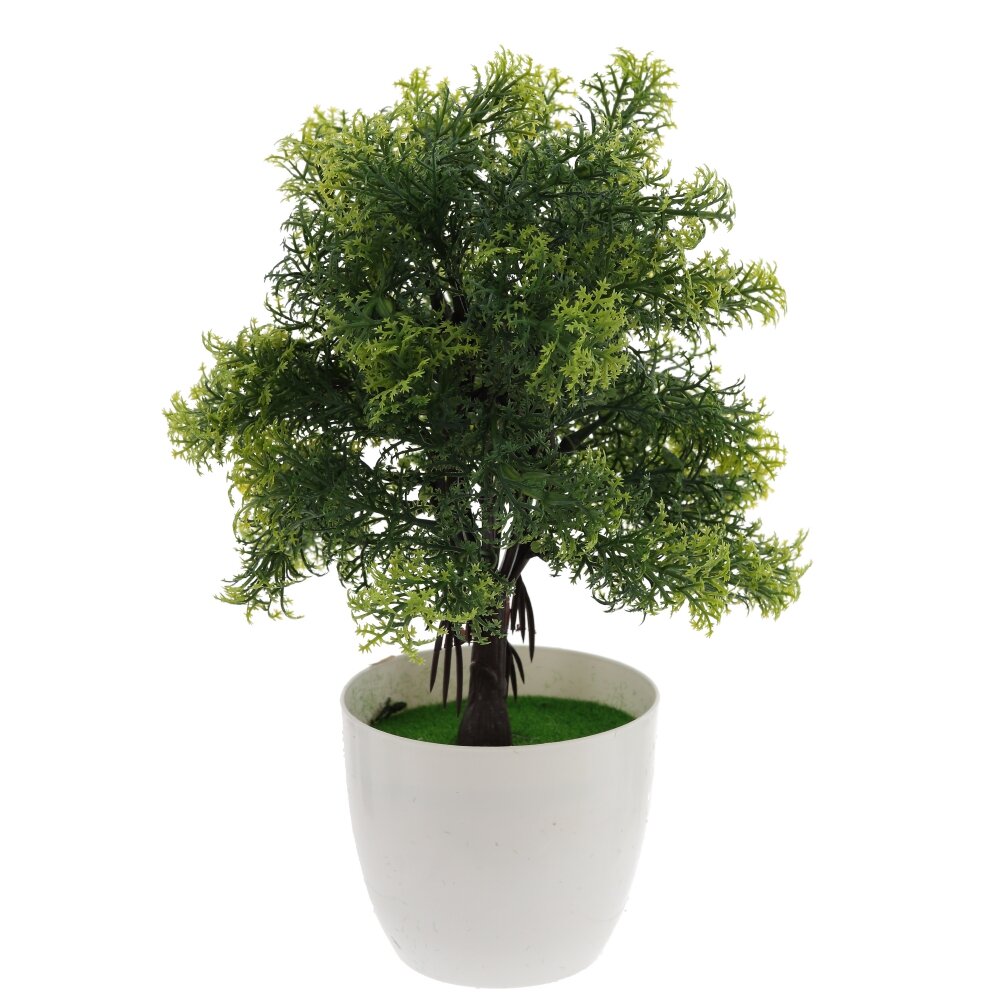 Искусственная цветочная композиция в виде миниатюрного декоративного дерева в белом горшке – стильный акцент для любого интерьера. Пышная крона из густой зелени с мягким переходом оттенков выглядит живой и ухоженной круглый год, не требуя полива, подсветки и специального ухода. Композиция устойчиво зафиксирована в лаконичном кашпо нейтрального белого цвета, что позволяет легко вписать её в офис, гостиную, кухню, приемную или магазинную витрину. Компактный размер удобен для размещения на подоконнике, полке, рабочем столе или тумбе. Отличное решение для тех, кто хочет добавить в пространство ощущение свежести и уюта без лишних хлопот.