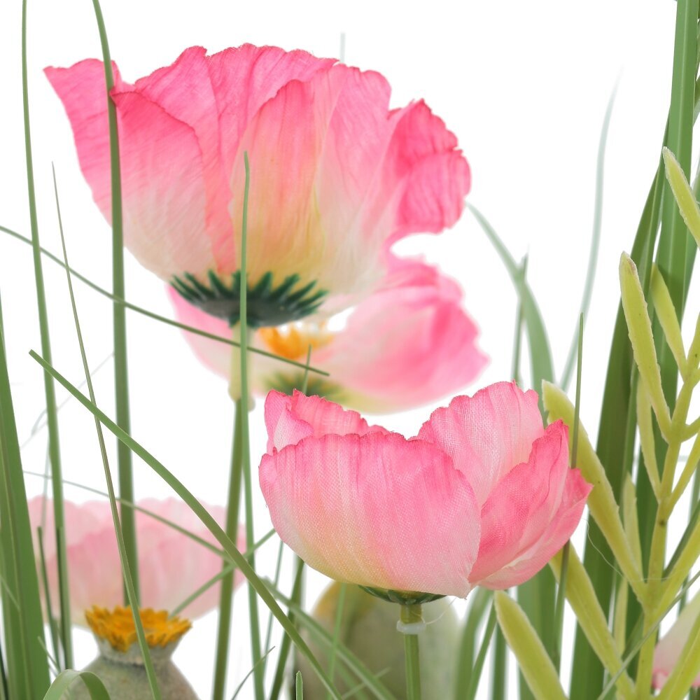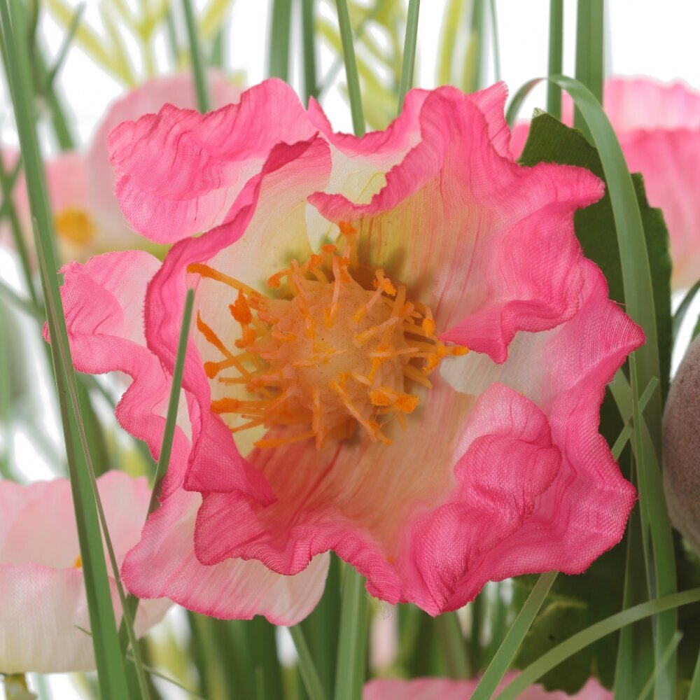 Изящный искусственный букет производит впечатление живых растений, и благодаря применению качественных материалов, его практически невозможно отличить от природных аналогов. Эта цветочная композиция позволит украсить комнату, лоджию или балкон согласно последним трендам.