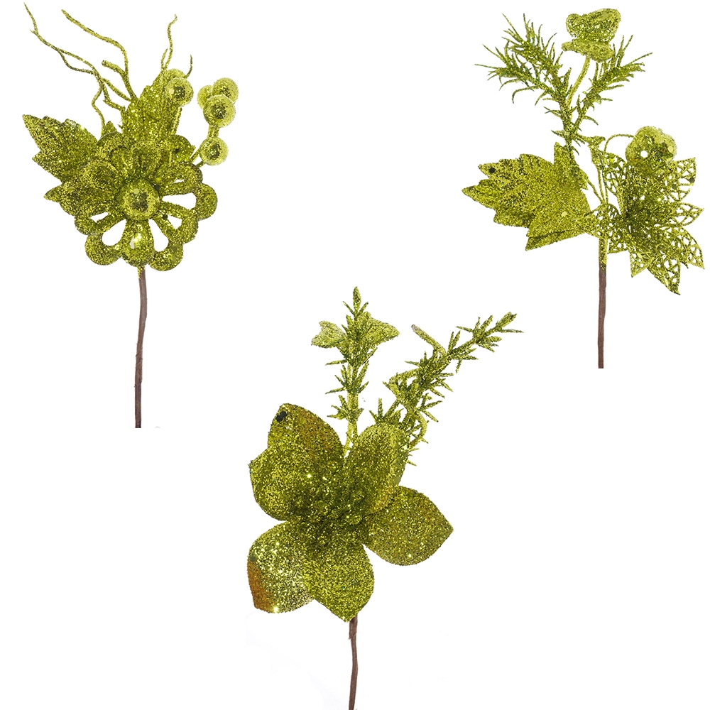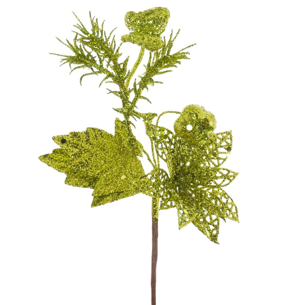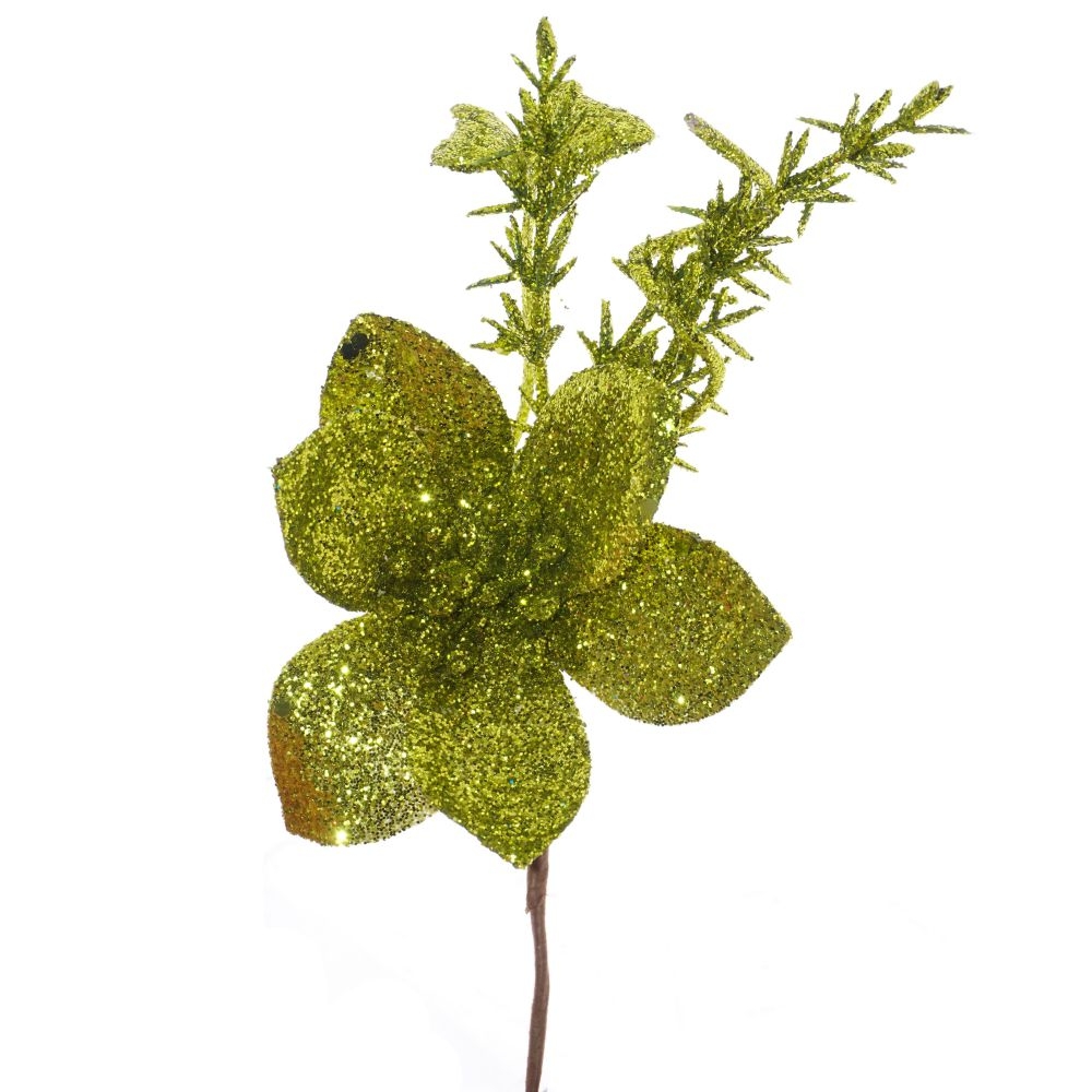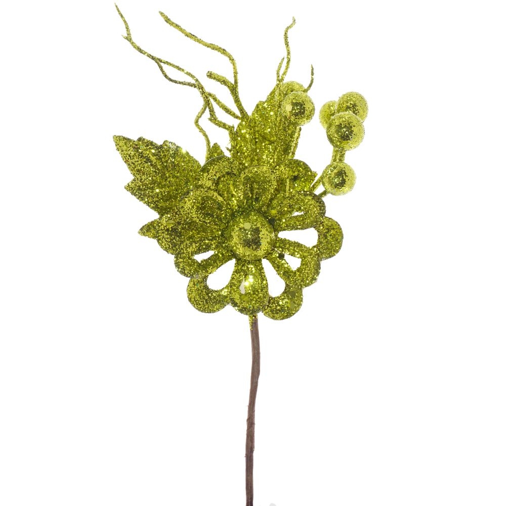 Объемный цветок покрыт глитером. Прекрасное украшение для новогодней елки и флористических композиций. Представлен в трех вариантах.