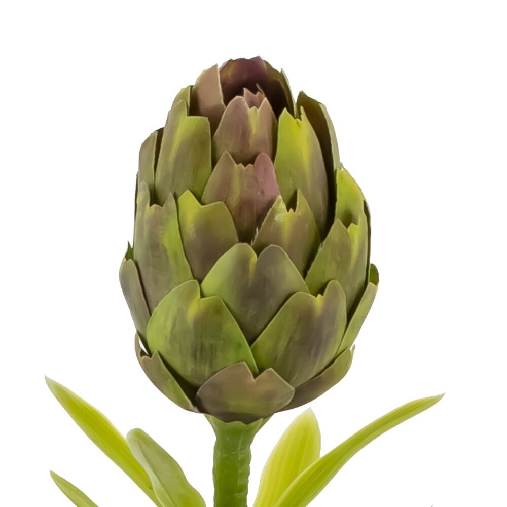 Искусственный цветок «Артишок» — элегантный декоративный стебель с вытянутой головкой и реалистичными лепестками-чешуйками. Плотная фактура и плавный переход оттенков от свежего салатового к оливково?зеленому с легкими бордовыми кончиками создают естественный вид. Длинный текстурированный стебель с внутренней проволокой позволяет задавать изгиб и высоту в композиции. Материалы устойчивы к выцветанию и не требуют ухода: достаточно протереть сухой салфеткой. Артишок гармонично смотрится в соло?вазе, в букете с луговыми травами или в минималистичных и эко?интерьерах, подходит для витрин, фотозон, свадебного и праздничного декора. Представлено в двух вариантах.