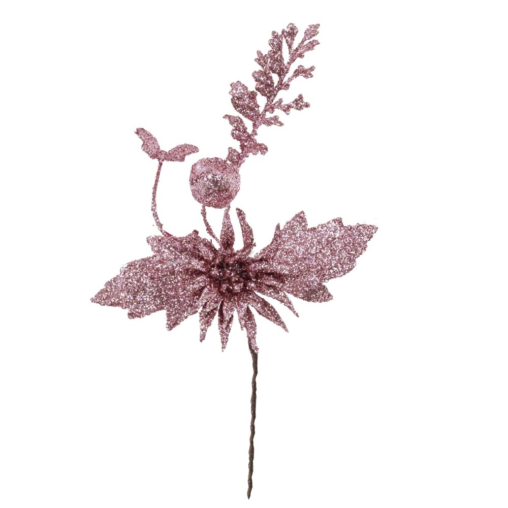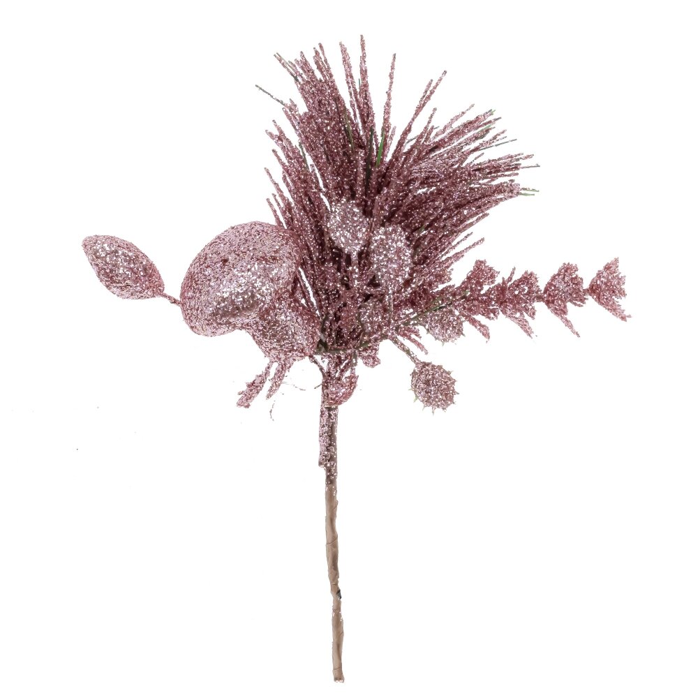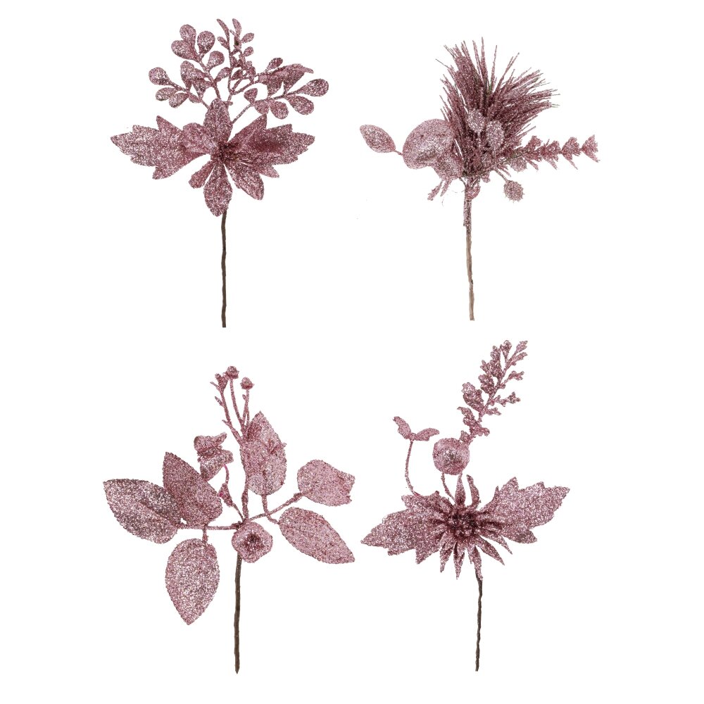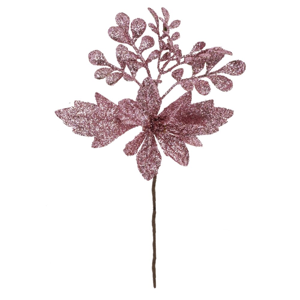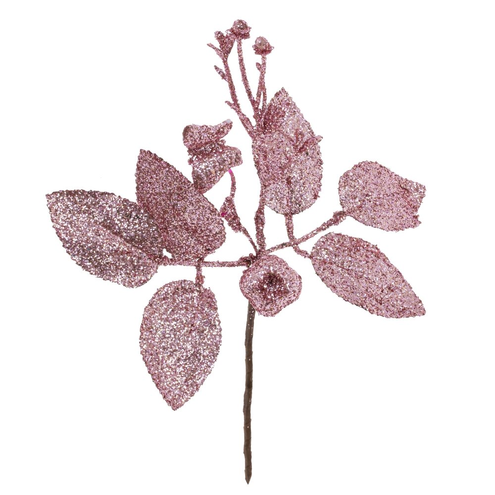 Мерцающая от глитера ветка с цветами и листьями. Используется для новогоднего и рождественского декорирования дома. Будет прекрасно сочетаться с самыми разными ветками и цветами в интерьерных композициях, а так же на елке. Представлена в четырех вариантах.