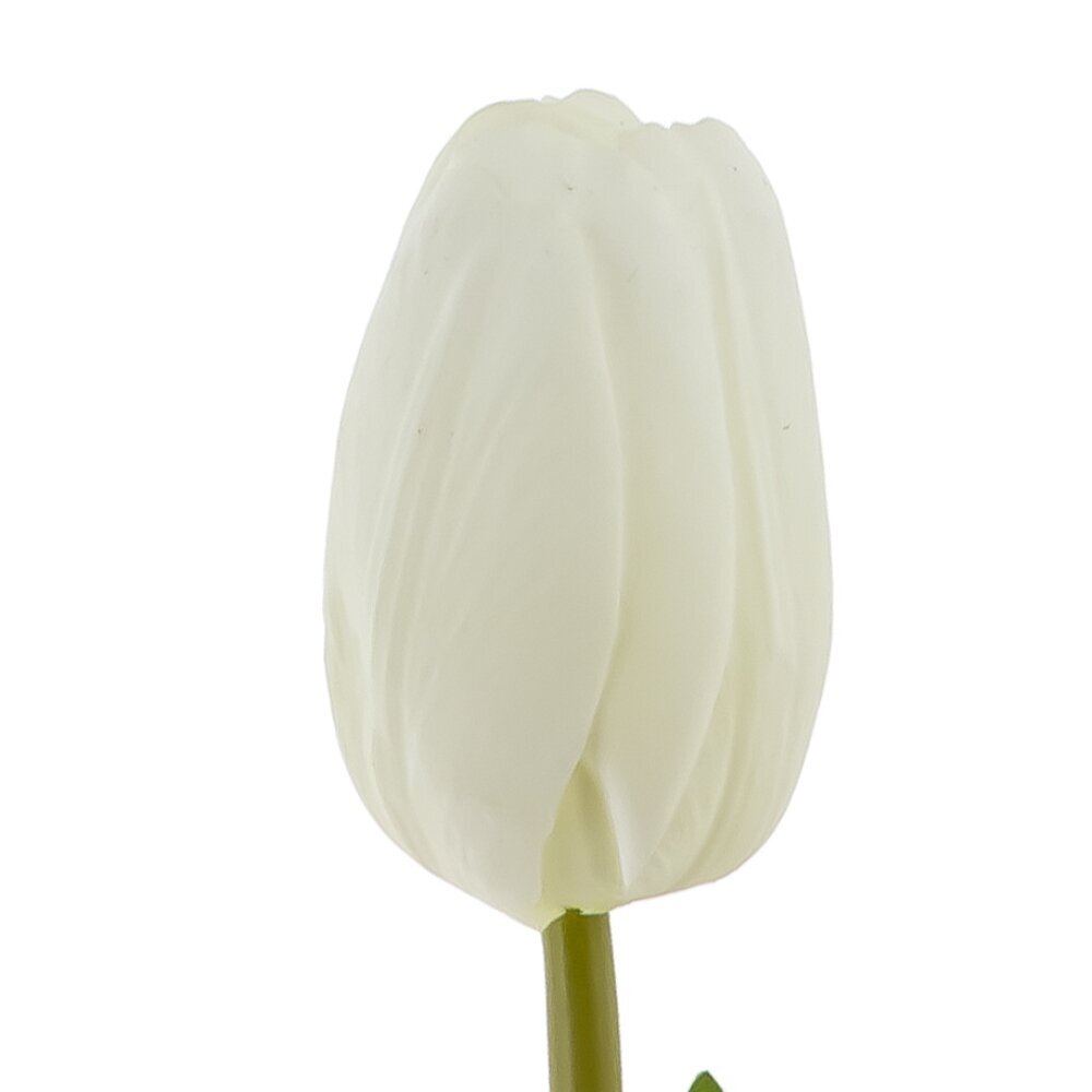 Искусственный цветок «Тюльпан» — элегантный белый бутон на стройном зелёном стебле с натуральной фактурой листьев. Плавные линии лепестков и аккуратно прилегающий закрытый бутон создают ощущение живого цветка, а насыщенная зелень листа подчёркивает чистоту и свежесть белого оттенка. Стебель гибкий, удобно принимает нужный изгиб и легко вписывается в композиции разной высоты. Такой тюльпан не требует ухода, не увядает и сохраняет форму сезон за сезоном, подходит для вазы-солиста или сборных букетов. Идеален для оформления интерьеров в минималистичном, современном или скандинавском стиле, для свадебного декора, витрин и фотосъёмок. Лёгкий, долговечный и гипоаллергенный, он дарит пространству ощущение чистоты и нежности без хлопот.