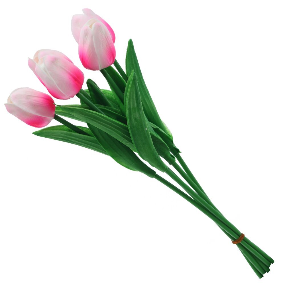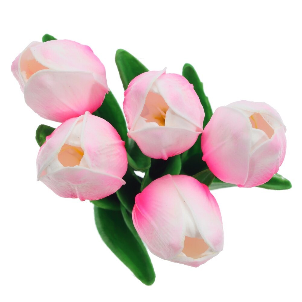 Искусственный букет тюльпанов выполнен из высококачественных полимерных материалов, что делает его практически неотличимым от живых цветов. Нежные лепестки с плавными переходами оттенков передают естественную текстуру и насыщенность окраса, а упругий стебель с реалистичными листьями обеспечивает долговечность и эстетичность композиции. Благодаря технологии Real Touch на ощупь цветы напоминают натуральные, создавая эффект свежесрезанных растений. Такой букет станет прекрасным украшением интерьера, подарком на праздник или элементом декора для фотосессий. Он не требует ухода, сохраняет свой безупречный вид в любое время года и идеально вписывается в любой стиль оформления помещения.