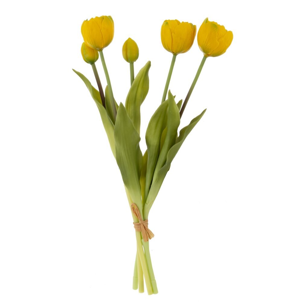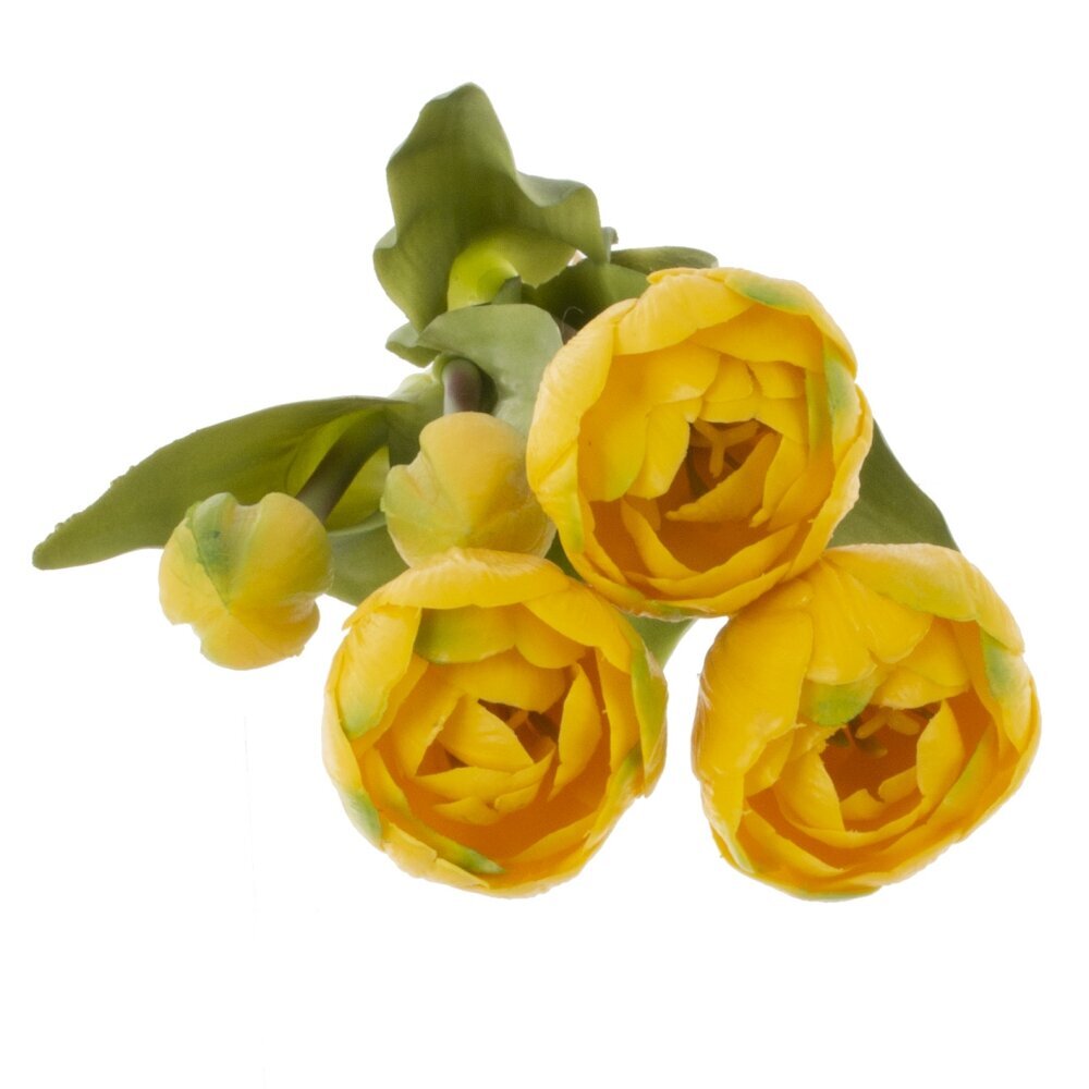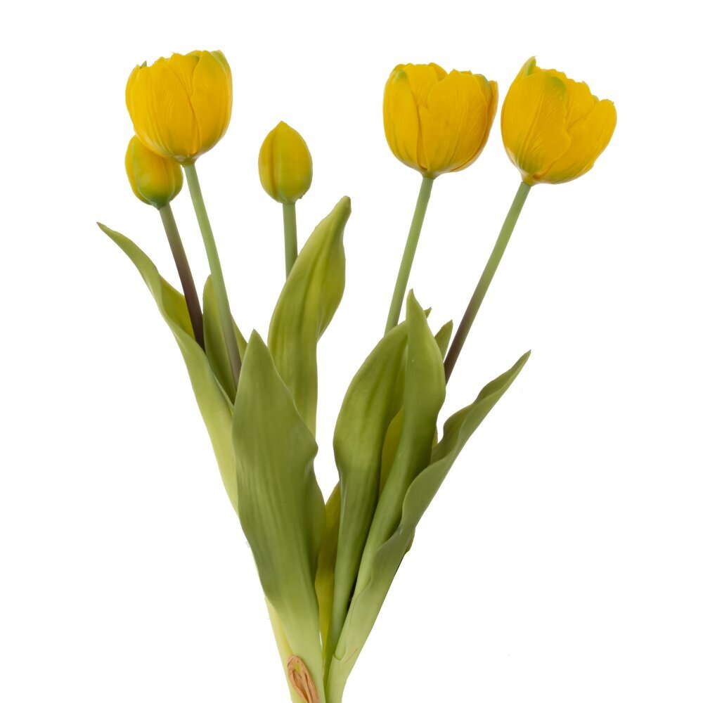 Букет искусственных тюльпанов, выполненный по технологии Real Touch, идеально имитирует натуральные цветы. Благодаря особому материалу лепестки на ощупь практически неотличимы от живых – они мягкие, эластичные и приятные на прикосновение. Яркие желтые бутоны и сочные зеленые листья создают жизнерадостное весеннее настроение. Такой букет станет украшением любого интерьера, прекрасно подойдет для подарка или декорирования праздничного стола. Искусственные тюльпаны не требуют ухода, долго сохраняют первоначальный внешний вид и не выцветают на солнце. Технология Real Touch придает флористической композиции максимальную реалистичность, что позволяет наслаждаться красотой тюльпанов круглый год.