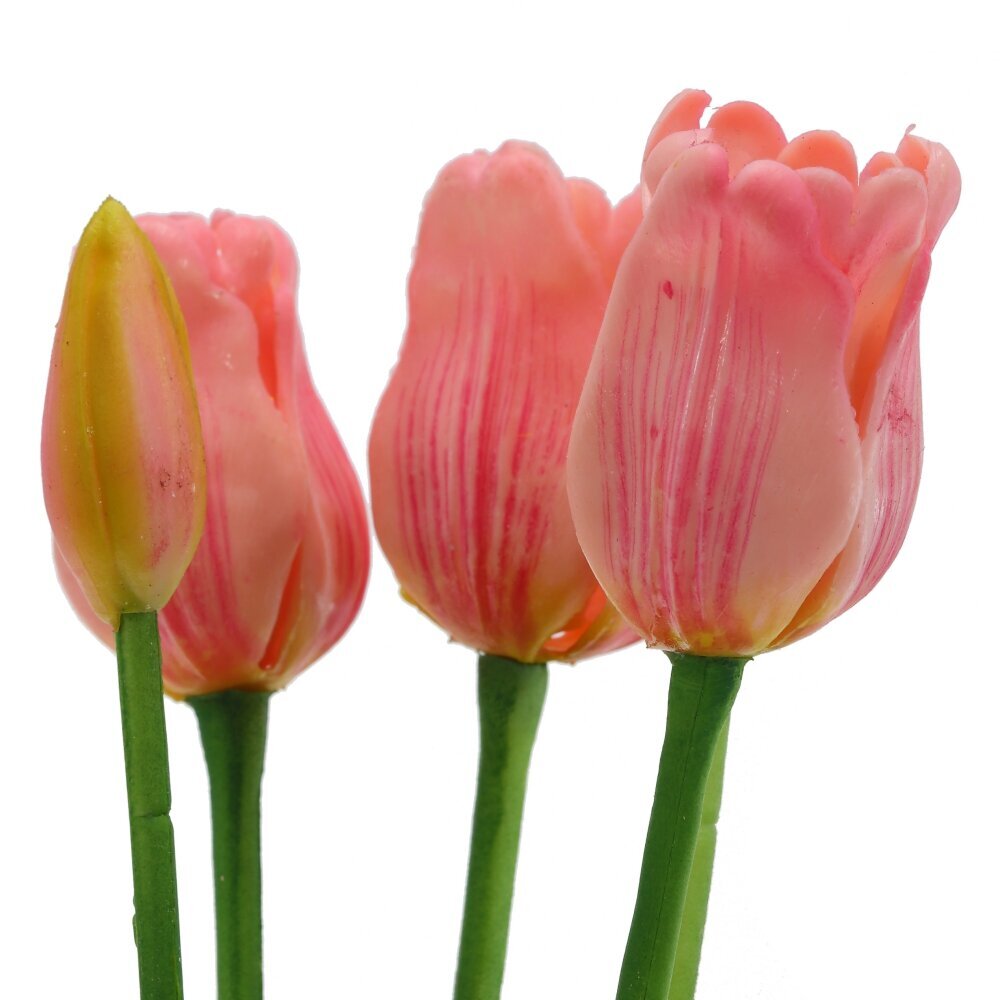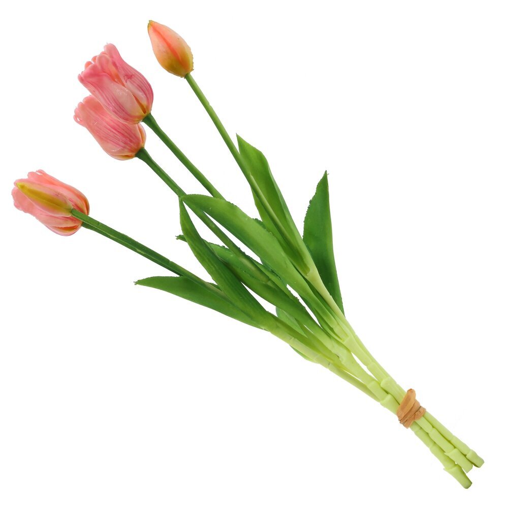 Искусственный букет тюльпанов выполнен из высококачественных полимерных материалов, что делает его практически неотличимым от живых цветов. Нежные лепестки с плавными переходами оттенков передают естественную текстуру и насыщенность окраса, а упругий стебель с реалистичными листьями обеспечивает долговечность и эстетичность композиции. Благодаря технологии Real Touch на ощупь цветы напоминают натуральные, создавая эффект свежесрезанных растений. Такой букет станет прекрасным украшением интерьера, подарком на праздник или элементом декора для фотосессий. Он не требует ухода, сохраняет свой безупречный вид в любое время года и идеально вписывается в любой стиль оформления помещения.