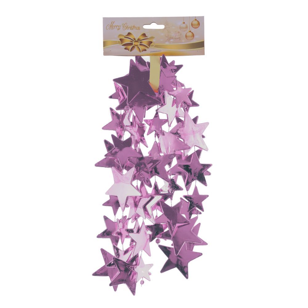 Бусы из полимерных материалов в виде крупных звезд, цвет сирневый, D5,6 см, L1,8 м