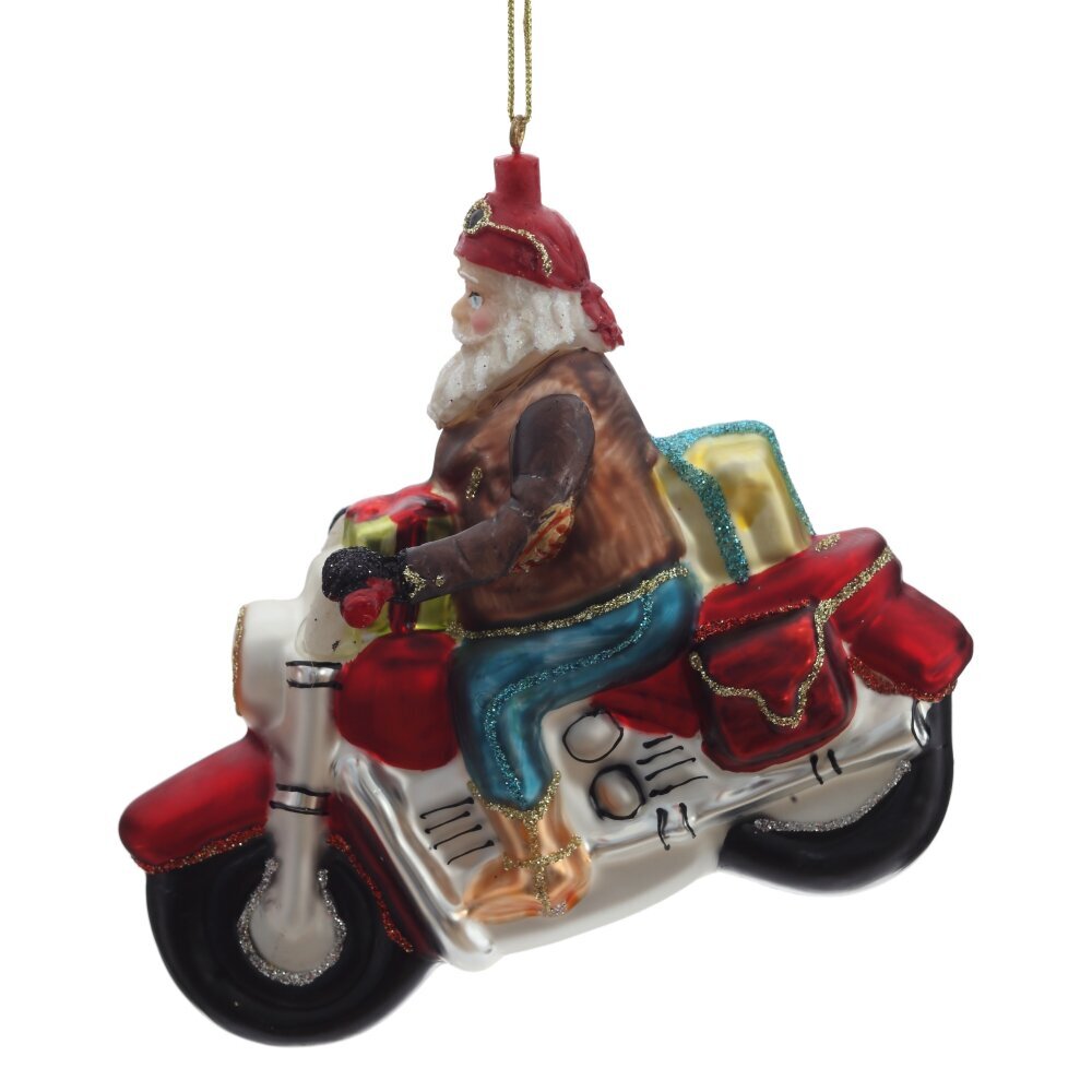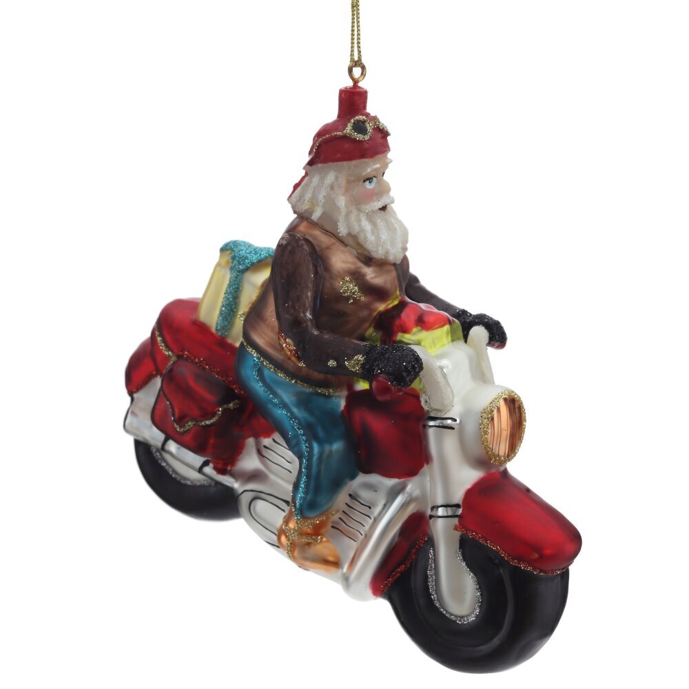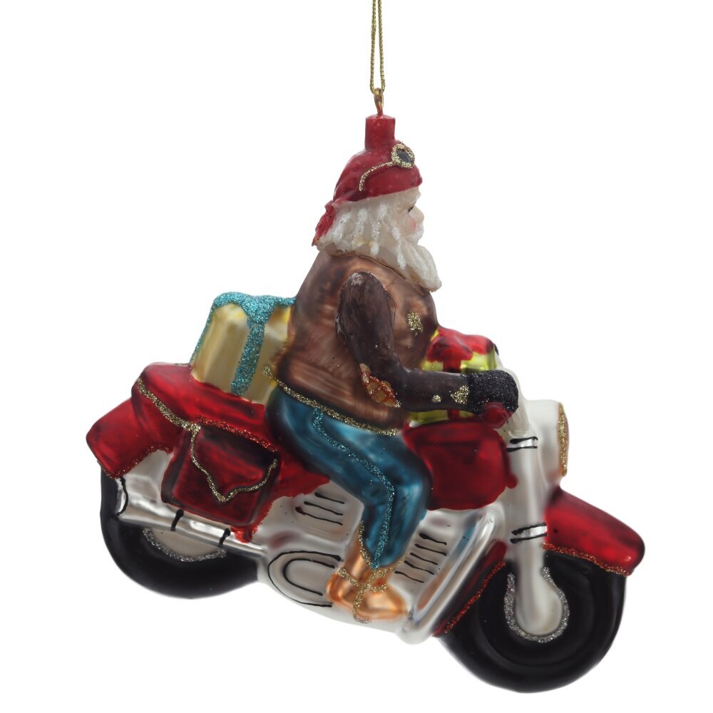 Новогодняя елочная игрушка "Дед Мороз на байке" — это уникальное стеклянное украшение, которое сочетает в себе традиционный дух праздника и современный стиль. Реалистично изображённый Дед Мороз, едущий на мощном мотоцикле, привлекает внимание яркими цветами и сверкающим блеском. Это идеальный подарок для байкеров и любителей металлической культуры, который добавит оригинальности в новогодний декор. Такая игрушка не только украсит вашу елку, но и придаст ей неповторимый характер, наполняя дом атмосферой веселья и новогоднего волшебства.