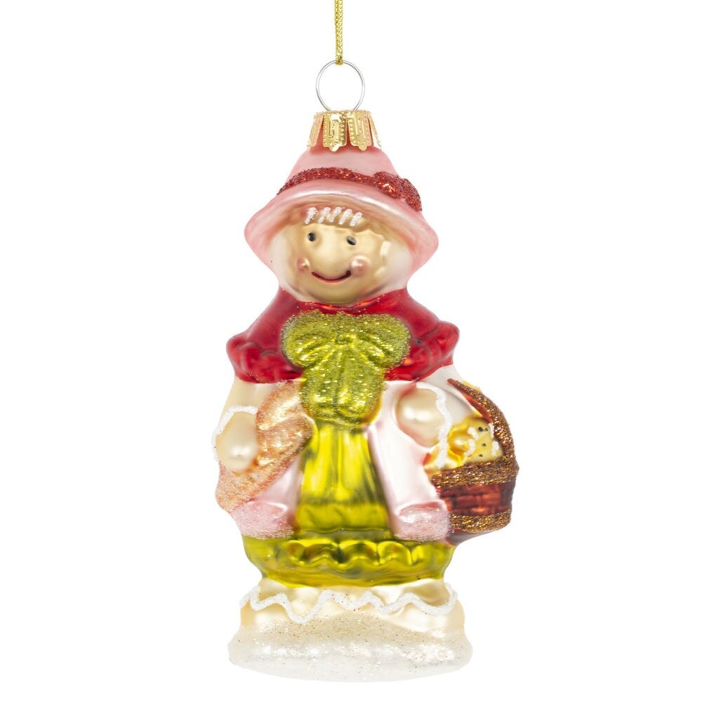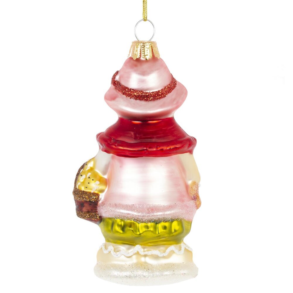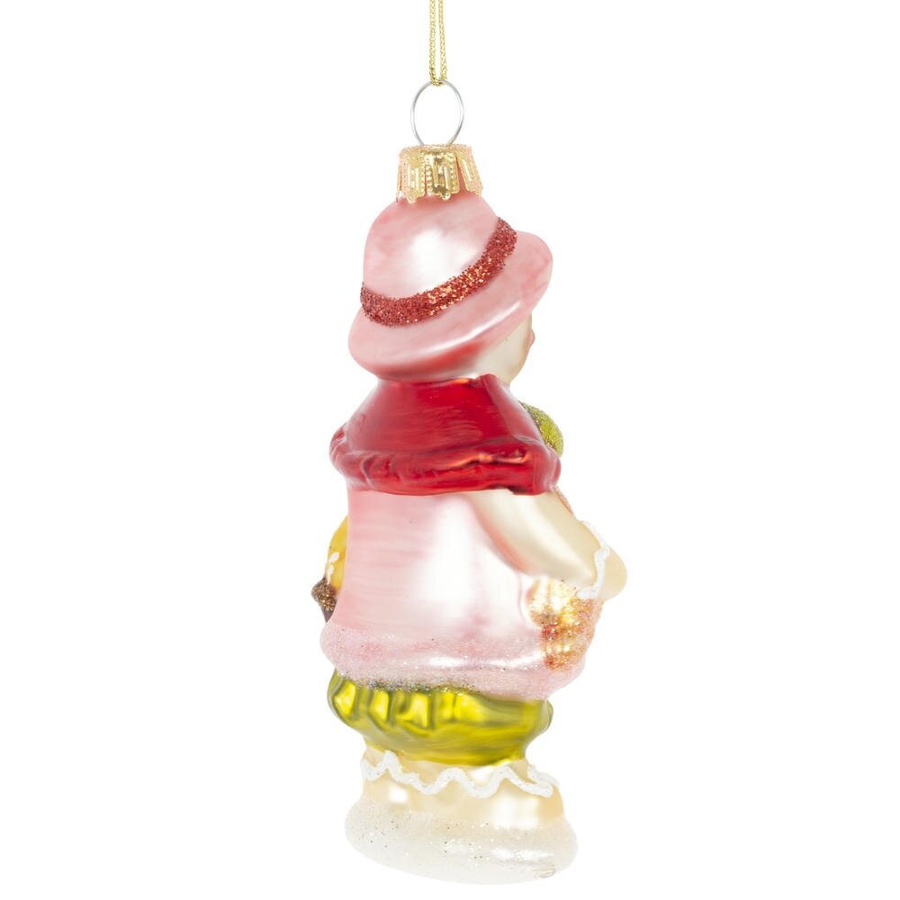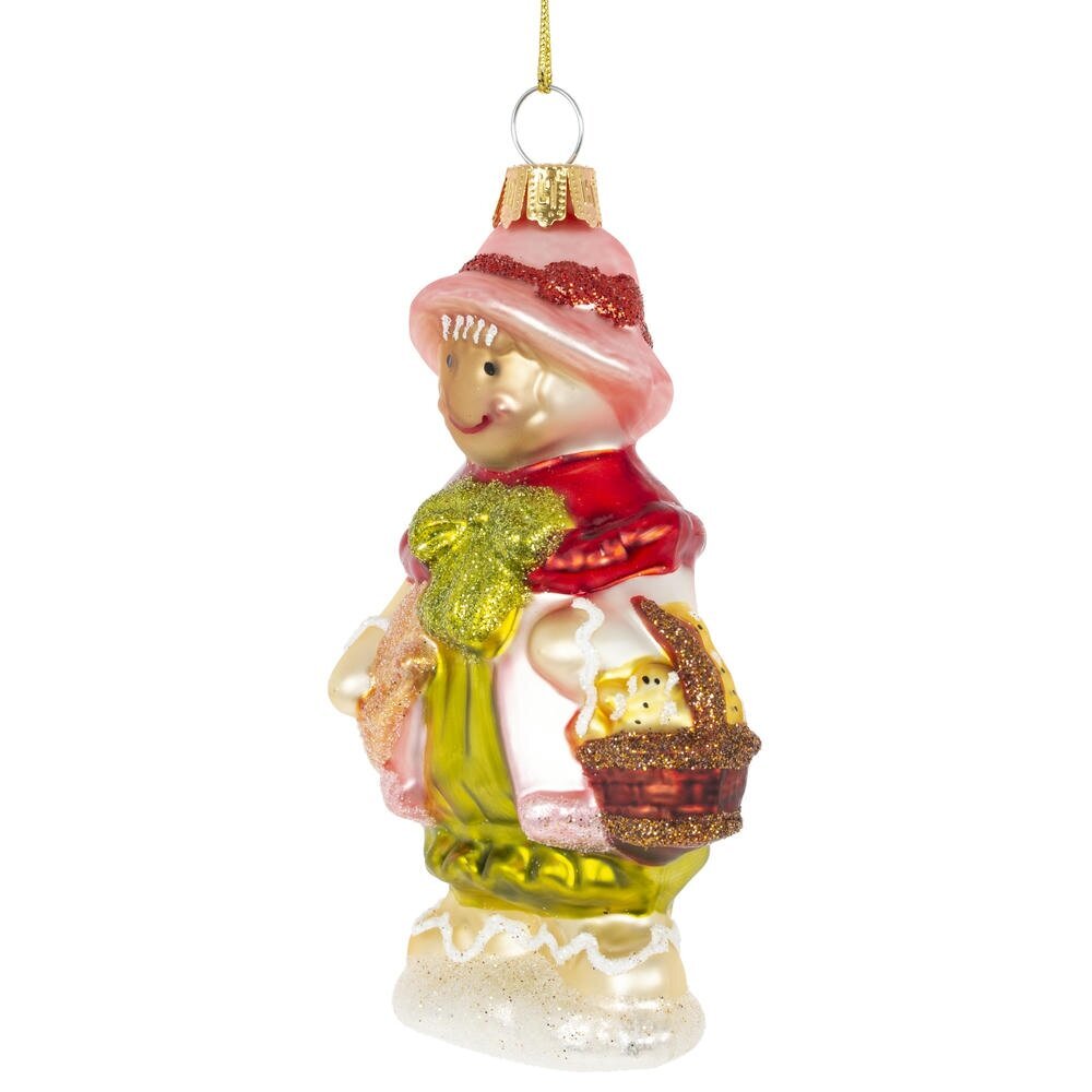 Очаровательное новогоднее украшение в виде девочки в нарядной одежде и изысканной шляпке станет ярким акцентом на вашей ёлке. Фигурка выполнена из стекла, украшена мерцающим шиммером и расписана вручную с особой тщательностью. Благодаря блеску и тонким деталям она привлекает взгляд и создаёт ощущение настоящей зимней сказки. Идеально для стильного праздничного декора или подарка с душой!