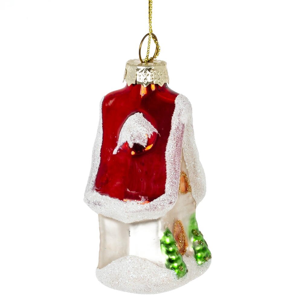 Очаровательное елочное украшение в виде стеклянного домика с красной крышей добавит уюта и волшебства вашему новогоднему декору. Крыша украшена искрящимся шиммером, который красиво переливается в свете гирлянд, создавая ощущение снежной сказки. Детали проработаны с особой тщательностью, что делает игрушку не только праздничной, но и по-настоящему атмосферной. Идеально для украшения елки или в подарок тем, кто ценит тепло домашнего уюта и магию Нового года.