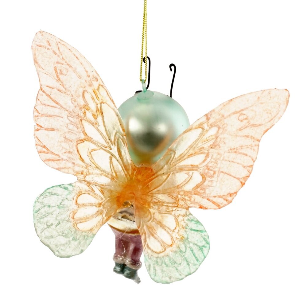 Новогоднее украшение "Фея" — это оригинальная елочная игрушка размером 10,5 см, выполненная из стекла. Это маленькая цветочная фея, вдохновленная образом пчелки. Её изящные крылышки из полимерных материалов придают игрушке легкость и волшебство. Фея одета в золотистое платье, а округлое личико с яркими глазками и милой улыбкой наполняет атмосферу праздника добротой и радостью. Это украшение станет ярким акцентом в вашем новогоднем декоре, привнося атмосферу сказки и волшебства на елку.
