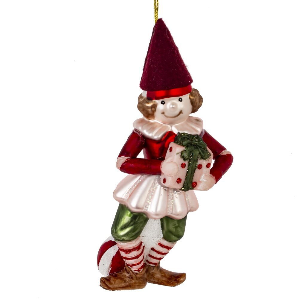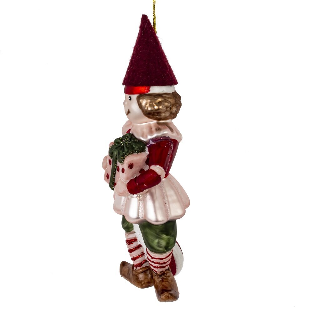 Забавный гном в ярком красном костюме и колпаке — это атмосферное елочное украшение из стекла, которое наполнит ваш дом уютом и новогодним волшебством. Его образ выполнен с любовью к деталям: мерцающий декор и игривое выражение лица придают игрушке сказочный характер. Красный цвет костюма символизирует праздник, тепло и радость, делая гнома заметным и ярким акцентом на елке. Такое украшение подойдёт как для классического новогоднего интерьера, так и для коллекции оригинальных фигурок. Прекрасный выбор для подарка или украшения с характером!