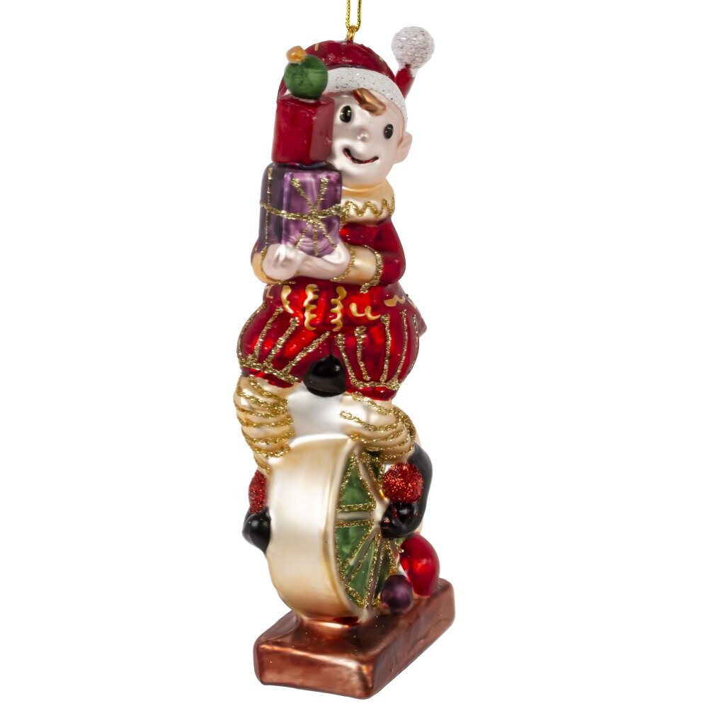 Забавный гном в ярком красном костюме и колпаке — это атмосферное елочное украшение из стекла, которое наполнит ваш дом уютом и новогодним волшебством. Его образ выполнен с любовью к деталям: мерцающий декор и игривое выражение лица придают игрушке сказочный характер. Красный цвет костюма символизирует праздник, тепло и радость, делая гнома заметным и ярким акцентом на елке. Такое украшение подойдёт как для классического новогоднего интерьера, так и для коллекции оригинальных фигурок. Прекрасный выбор для подарка или украшения с характером!