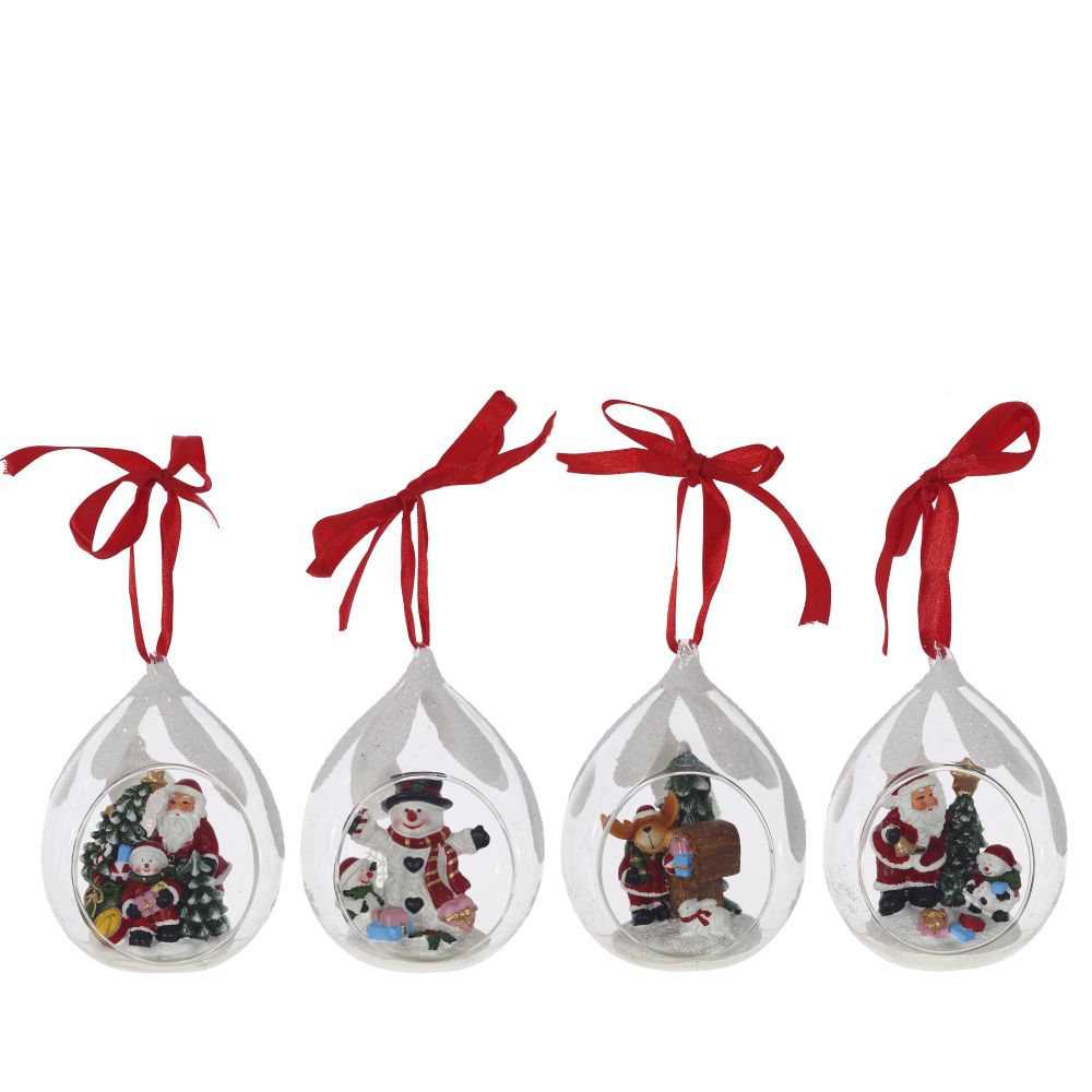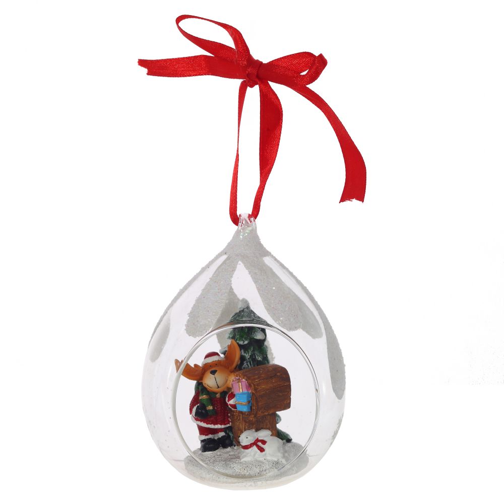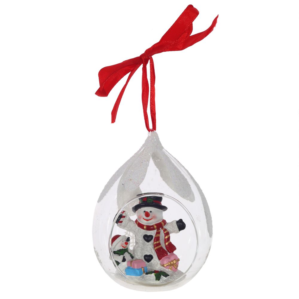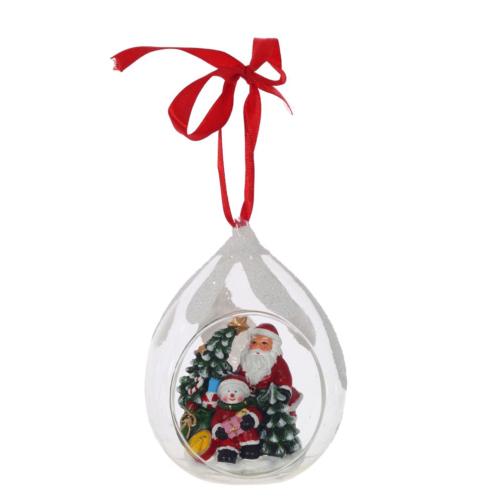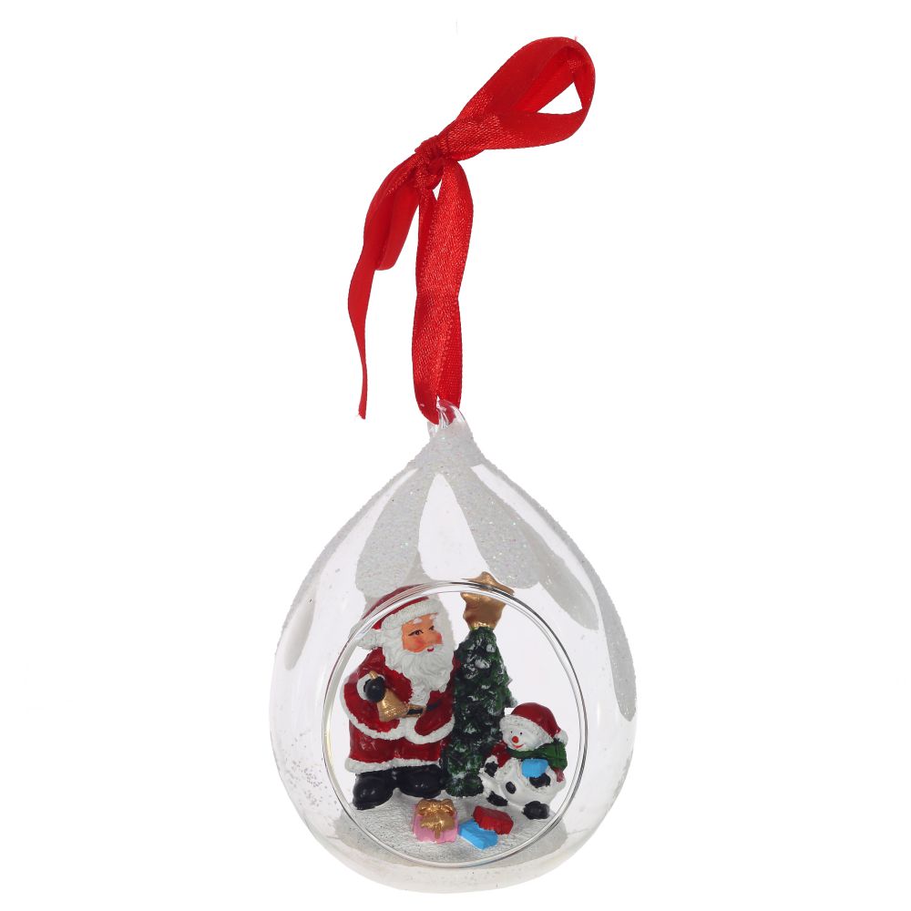 Елочное украшение в виде прозрачной капли с фигурками новогодних персонажей внутри. Отлично подойдет для декорации вашего дома и новогодней ели. С помощью специальной петельки игрушку можно подвесить. Такое украшение создаст в вашем доме атмосферу праздника, веселья и радости. Представлено в четырех вариантах.