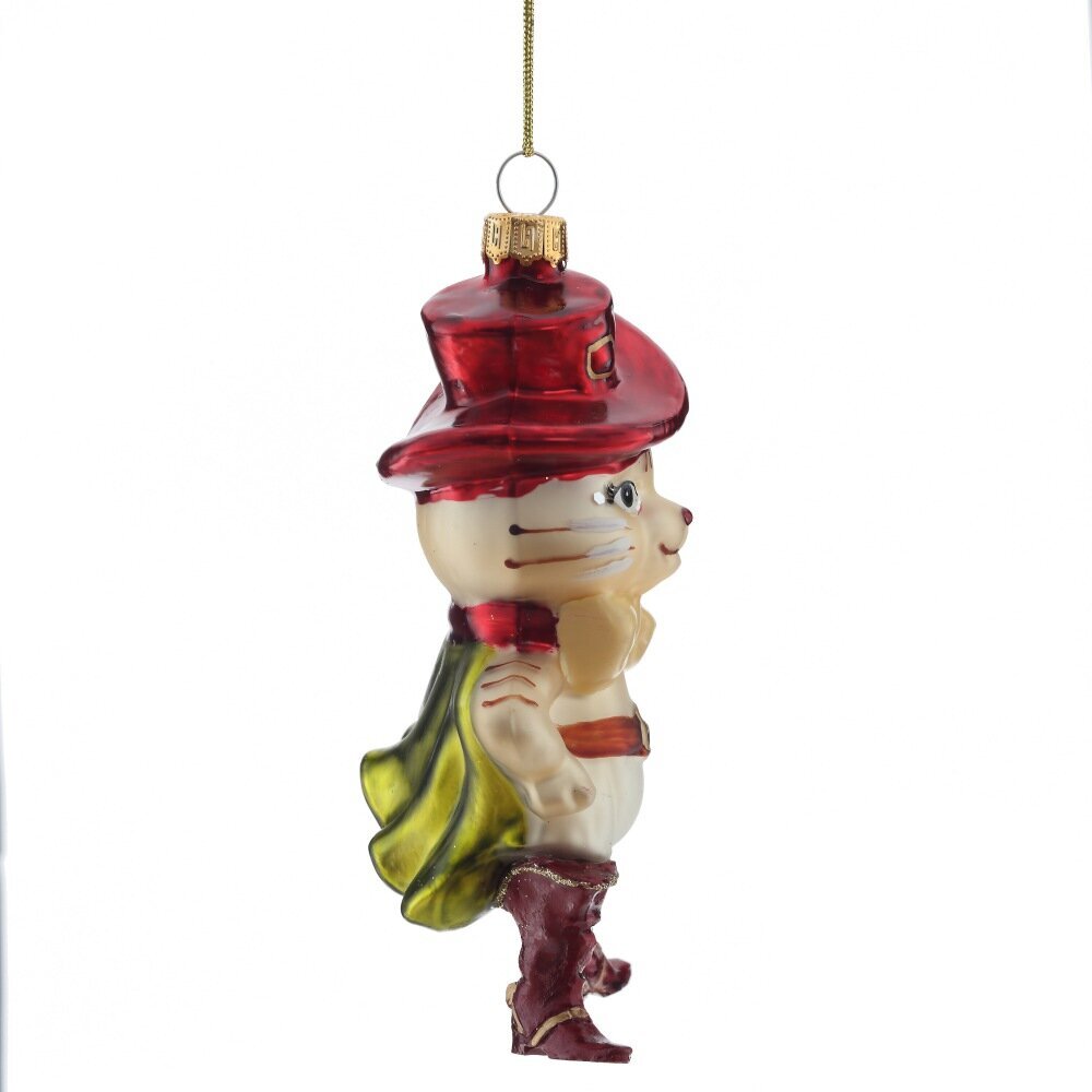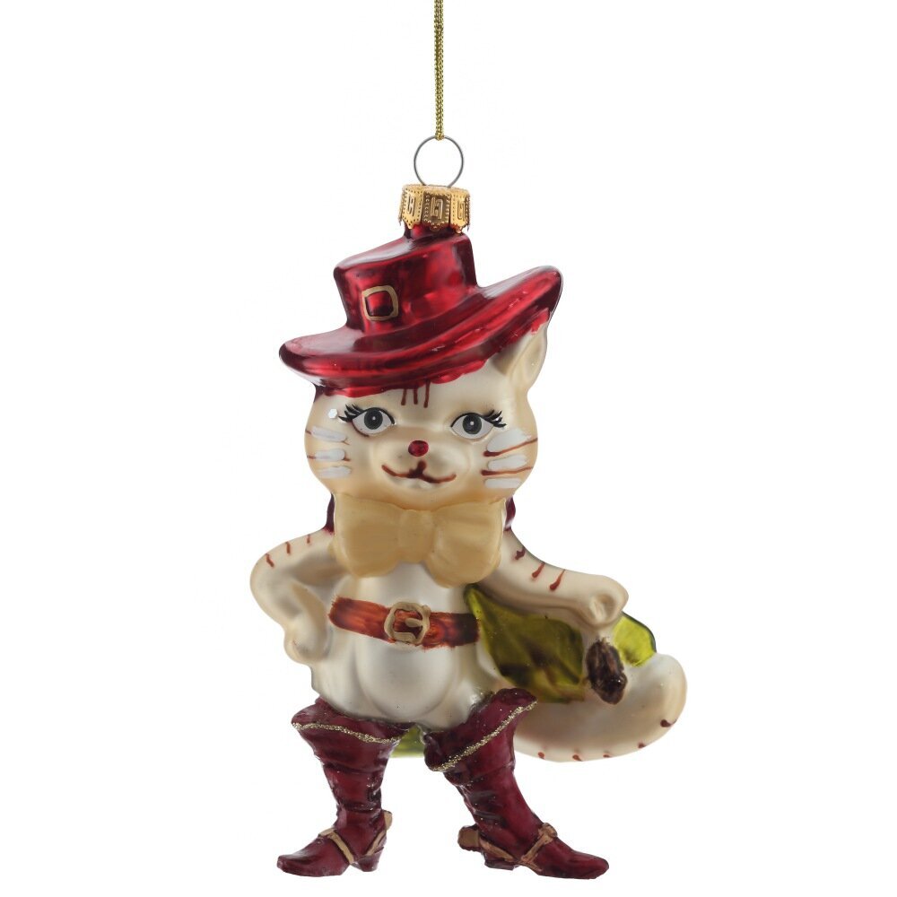 Вот она - настоящая классика елочных украшений. Стеклянная игрушка в форме Кота в сапогах. Рыжий кот в красной шляпе и сапогах смотрится очень мило и забавно. Выполненная в традиционном стиле, она подарит самое теплое ощущение настоящего новогоднего волшебства. Украсьте свою елку этой очаровательной игрушкой и окунитесь в атмосферу сказочного праздника!