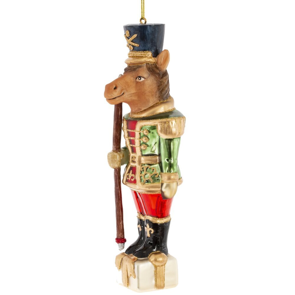 Добавьте волшебства в праздничное оформление с этим изысканным новогодним украшением из стекла в форме лошади-солдатика. Идеально выполненное изделие сочетает в себе яркие цвета, блестящие акценты и тонкую проработку деталей, создавая ощущение сказки и уюта. Такое украшение украсит вашу ёлку, интерьер или станет оригинальным подарком для ценителей классического новогоднего декора. Лошадь-солдатик символизирует отвагу, силу и движение вперёд — отличный талисман на Новый год!