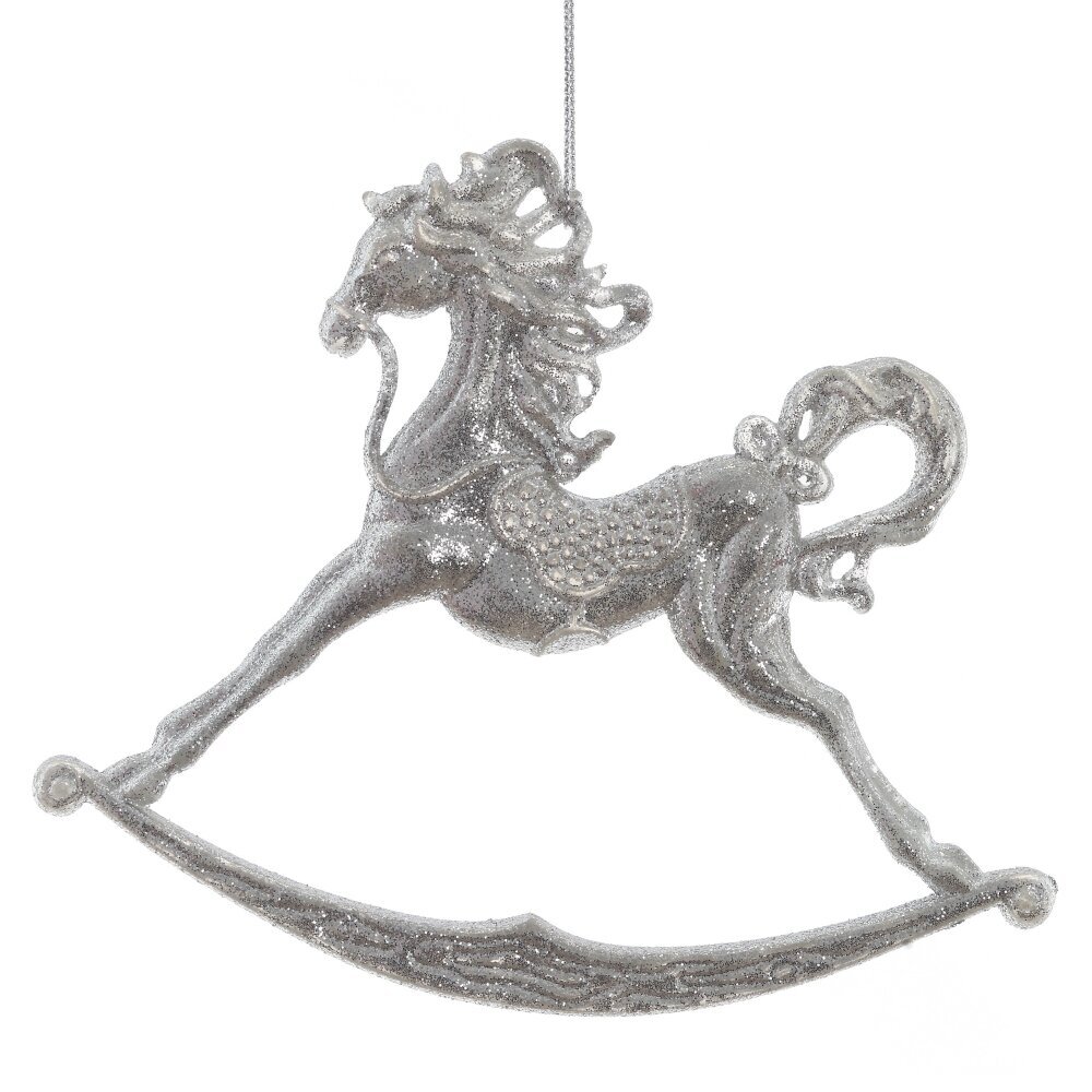 Декоративное подвесное изделие "Лошадка" — это элегантное новогоднее украшение из полиакрила, украшенное серебряным глиттером. Легкая и изящная лошадка-качалка добавит волшебства и праздничного настроения вашему интерьеру. Это украшение станет прекрасным акцентом на рождественской елке или в вашем декоре.