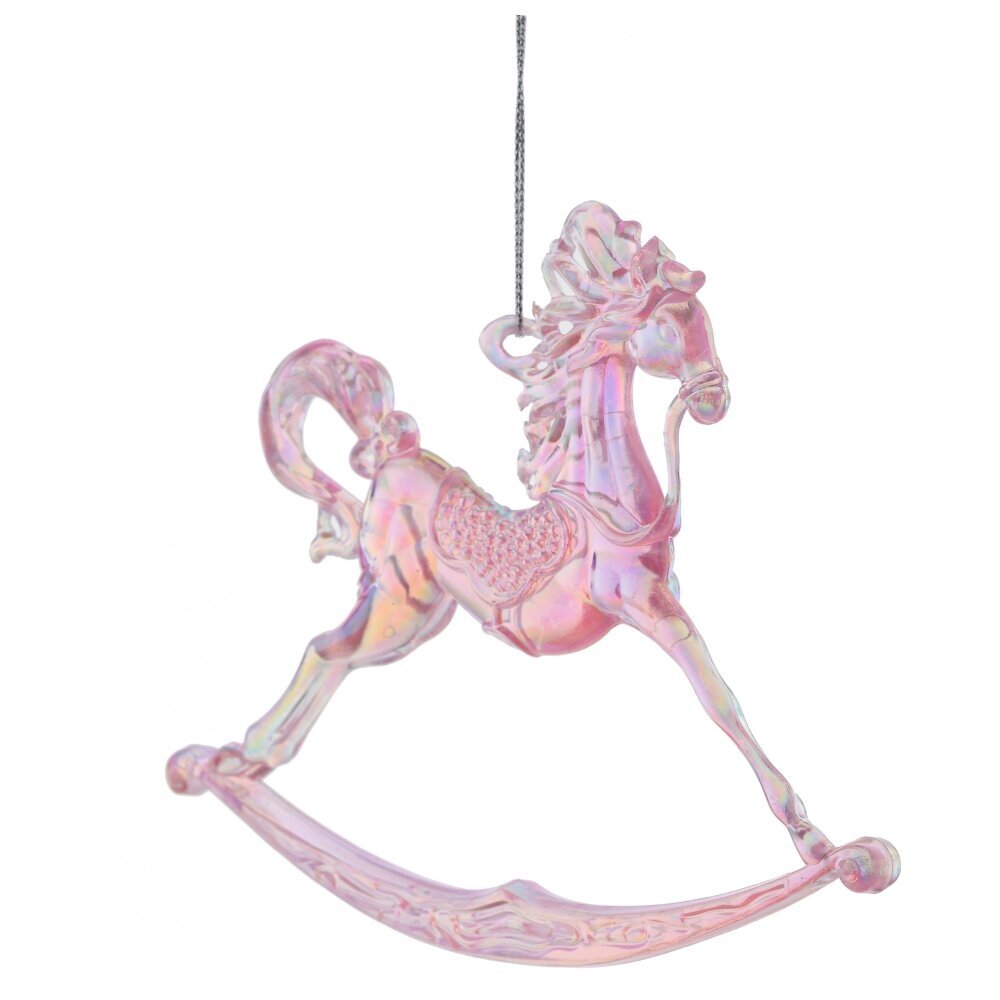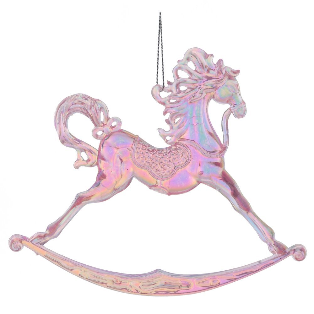 Декоративное подвесное изделие "Лошадка" — это элегантное новогоднее украшение из прозрачного розового полиакрила с эффектом хамелеона. Легкая и изящная лошадка-качалка добавит волшебства и праздничного настроения вашему интерьеру. Это украшение станет прекрасным акцентом на рождественской елке или в вашем декоре.
