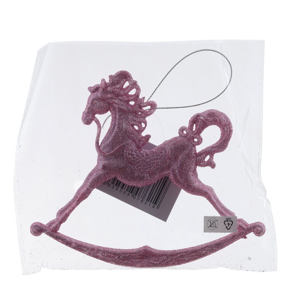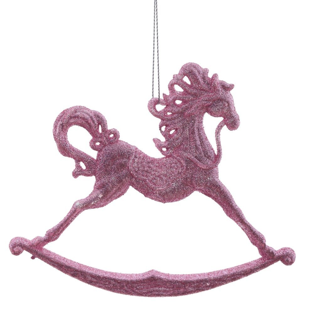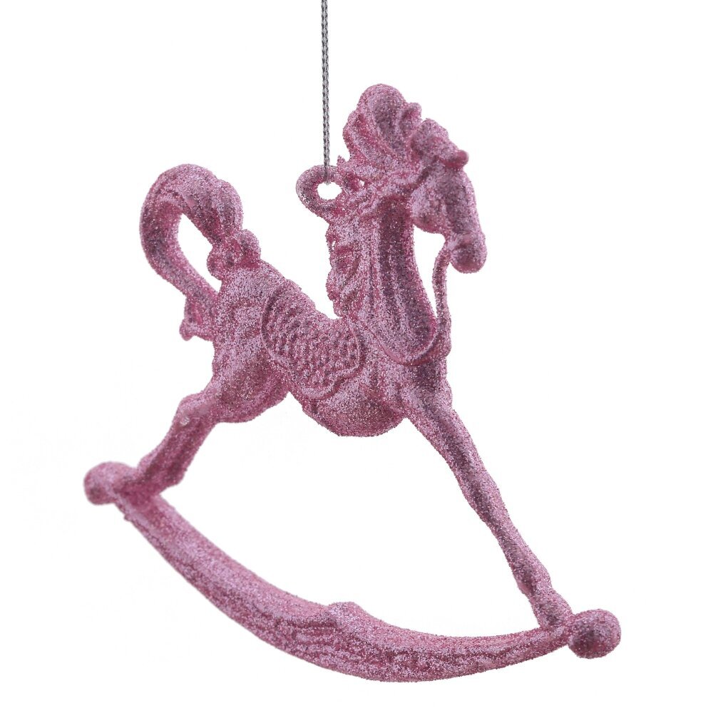 Декоративная новогодняя лошадка-качалка из розового полимерного материала с глиттером - прекрасное украшение размером 14,5х1х12 см. Ее блестящий вид и изящный дизайн придадут праздничное настроение и уют вашему интерьеру. Подвеска для удобного размещения поможет вам создать волшебную новогоднюю атмосферу в доме.