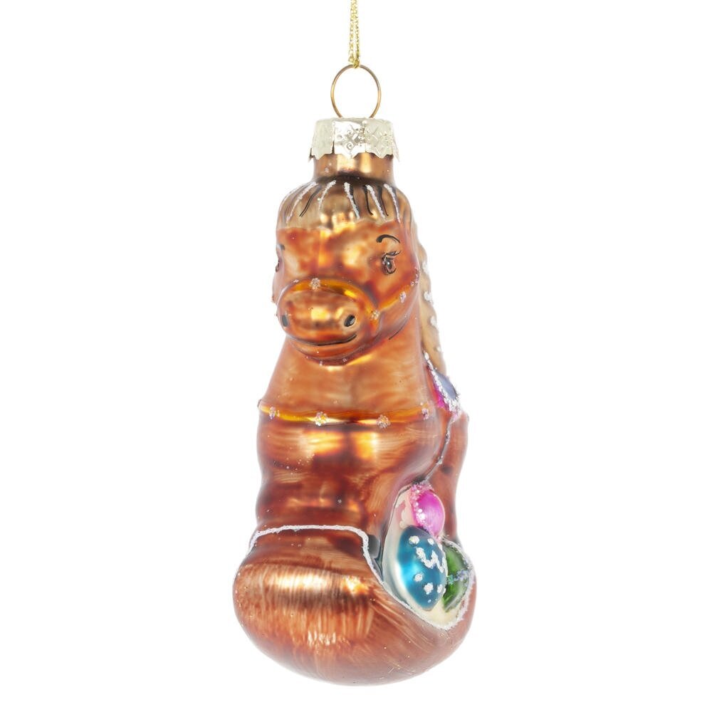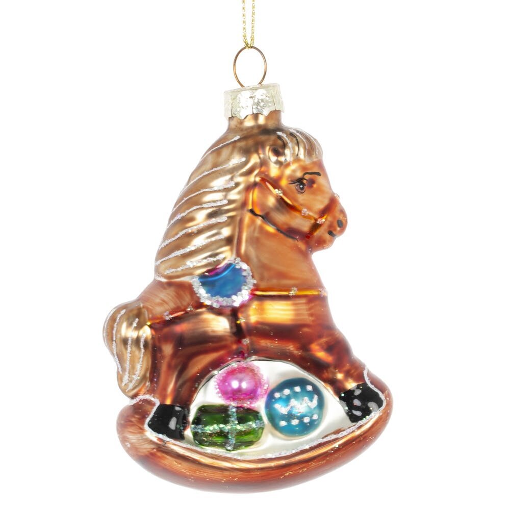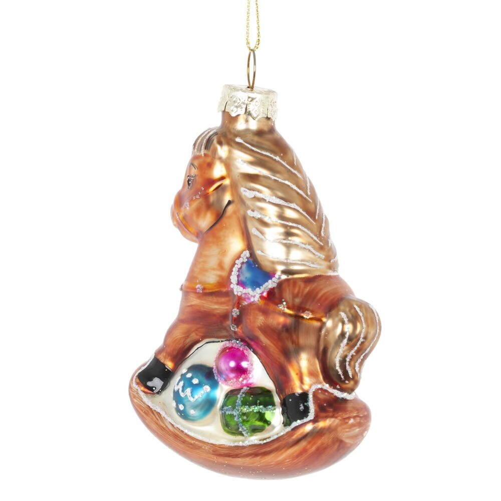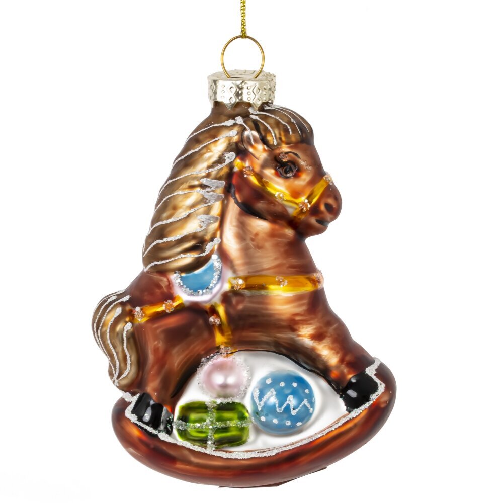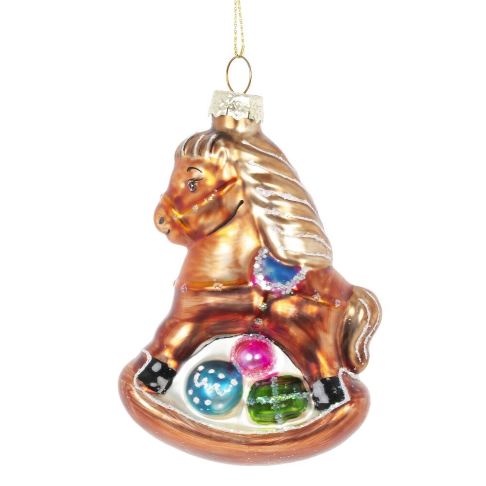 Ощутите волшебство Нового года с нашей елочной стеклянной игрушкой "Лошадка" — очаровательной маленькой лошадкой-качалкой, символизирующей грацию и силу 2026 года! Выполненная из стекла в виде милой лошадки с золотистым отливом и яркими разноцветными шариками на подставке, эта игрушка станет настоящим украшением вашей ёлки, наполняя дом уютом и теплом. Она пробуждает детские воспоминания о счастливых праздниках, распахивая двери в мир сказок и семейных традиций. Идеальный подарок для близких: просто повесьте её на ветви, и пусть она дарит искрящееся волшебство каждому взгляду.