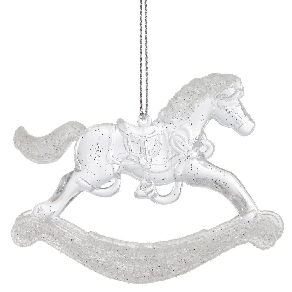 Ёлочное украшение в форме лошадки-качалки из прозрачного акрила с блестящим напылением — это стильный и изящный элемент новогоднего декора. Выполненное из лёгкого, но прочного материала, оно прекрасно отражает свет гирлянд и создаёт волшебное сияние на ёлке. Форма лошадки-качалки символизирует уют, тепло и воспоминания о детстве, придавая праздничному убранству особое настроение. Блестящее покрытие добавляет изделию нарядности и визуального объёма, делая его заметным даже среди других игрушек. Такое украшение подойдёт для классической, винтажной или современной новогодней композиции, гармонично впишется в интерьер и станет милым акцентом в праздничном оформлении. Подходит для декора ёлки, венков, подарочной упаковки или создания праздничных композиций. Отличный вариант как для домашнего использования, так и в качестве символического сувенира.