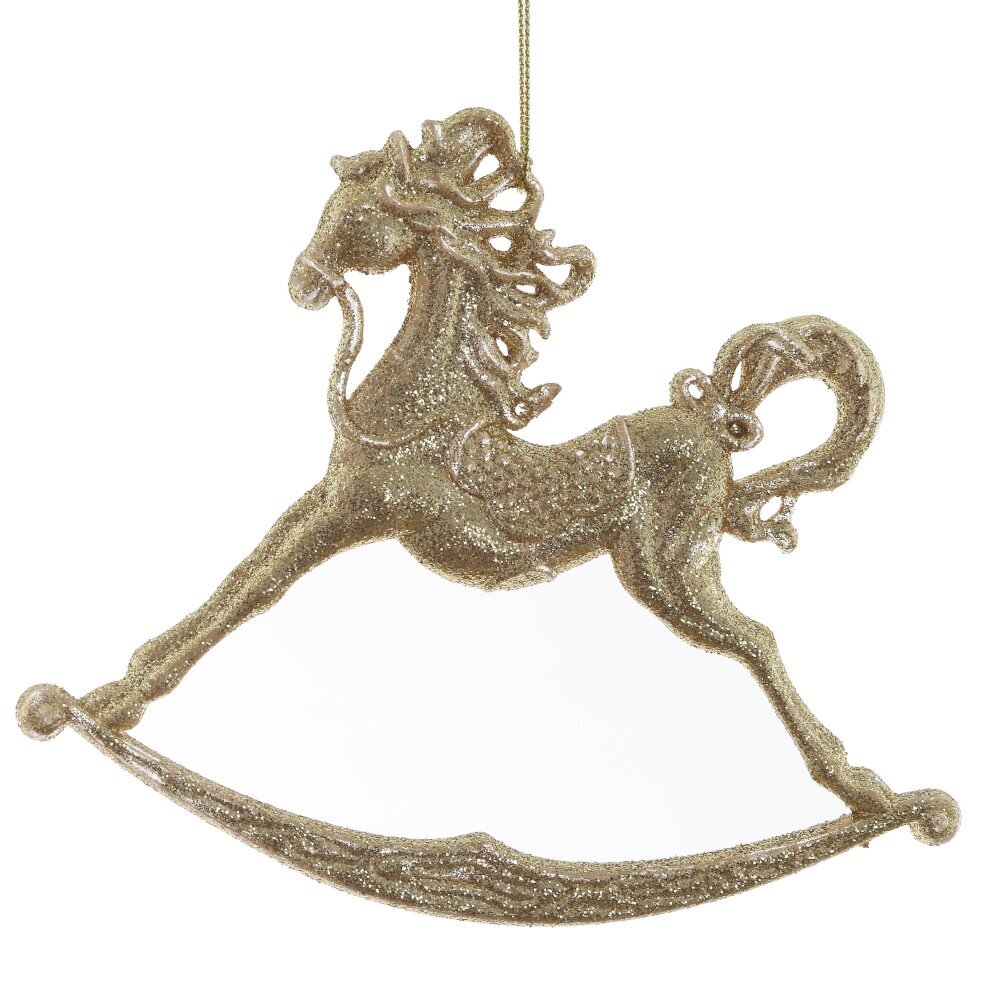 Декоративное подвесное изделие "Лошадка" — это элегантное новогоднее украшение из полиакрила, украшенное золотым глиттером. Легкая и изящная фигурка лошадки добавит волшебства и праздничного настроения вашему интерьеру. Это украшение станет прекрасным акцентом на рождественской елке или в вашем декоре.