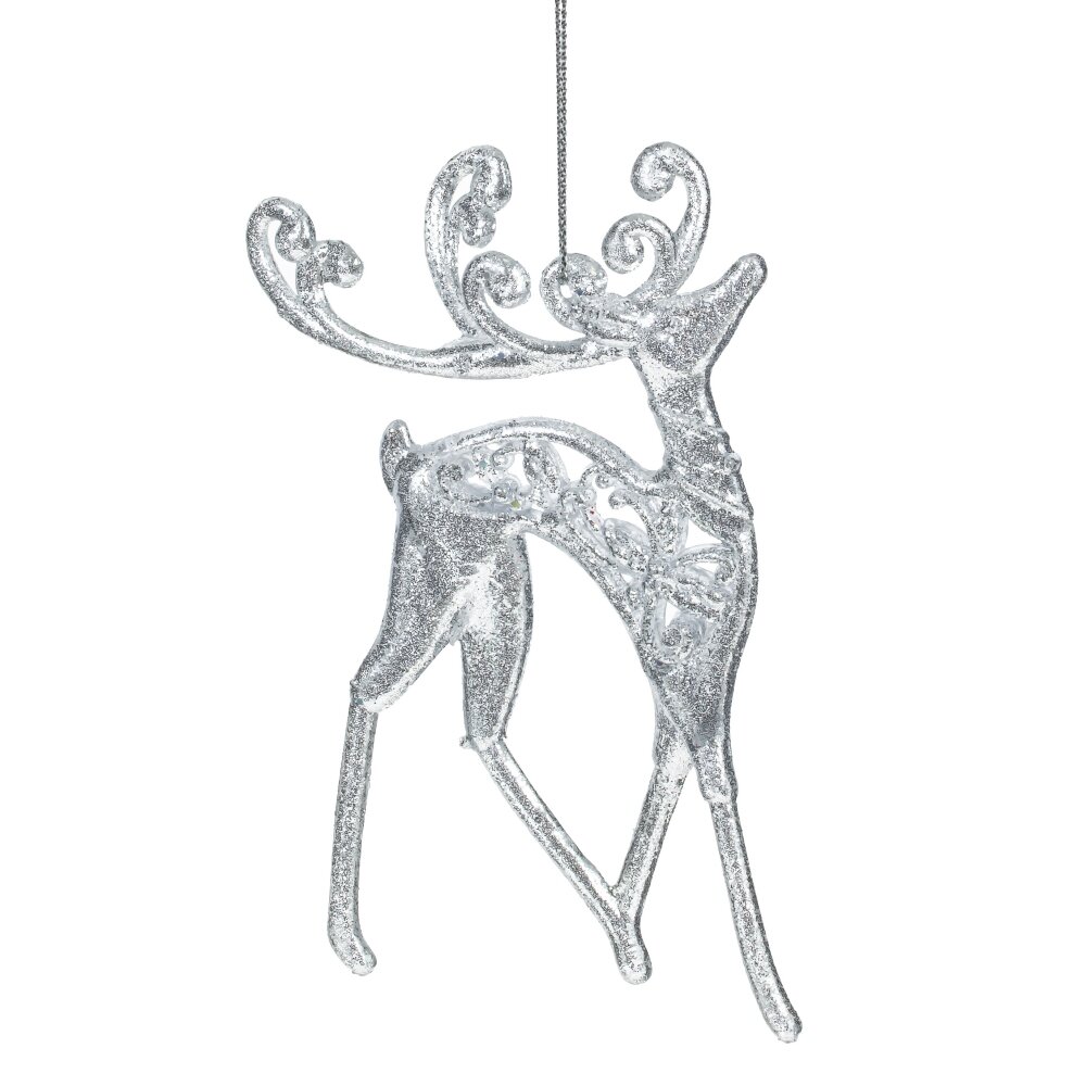 Олень с искристым напылением . Глиттер придает украшению яркости и блеска. Великолепно гармонирует с любым убранством новогодней ели.