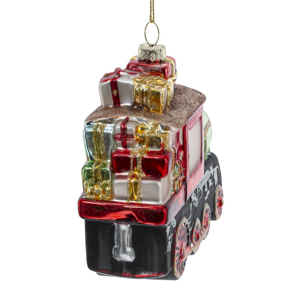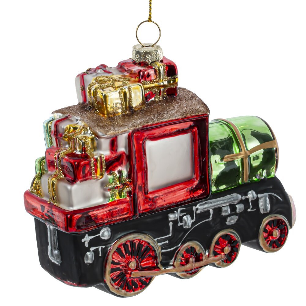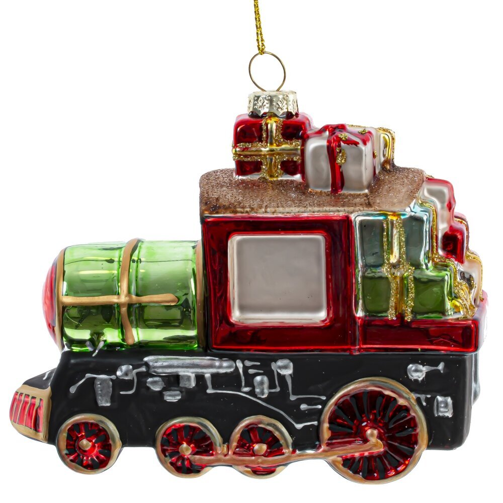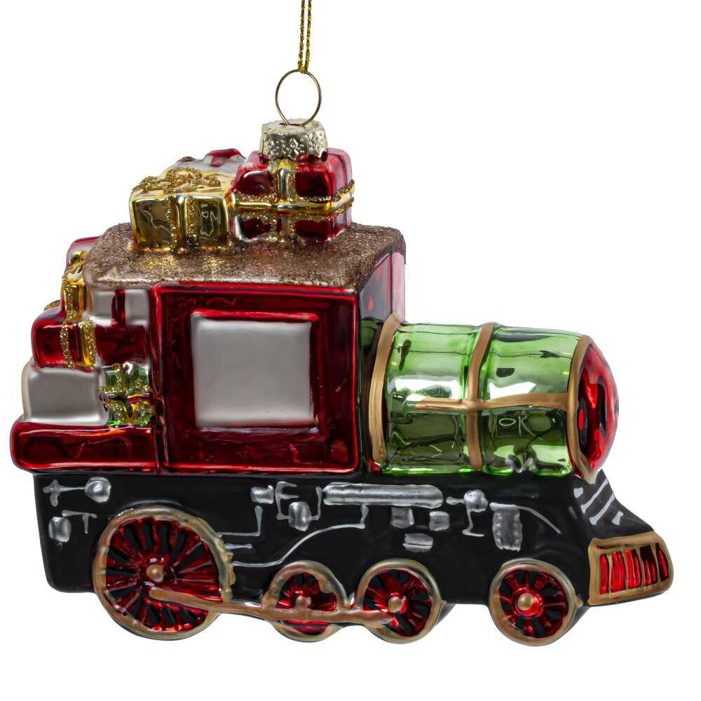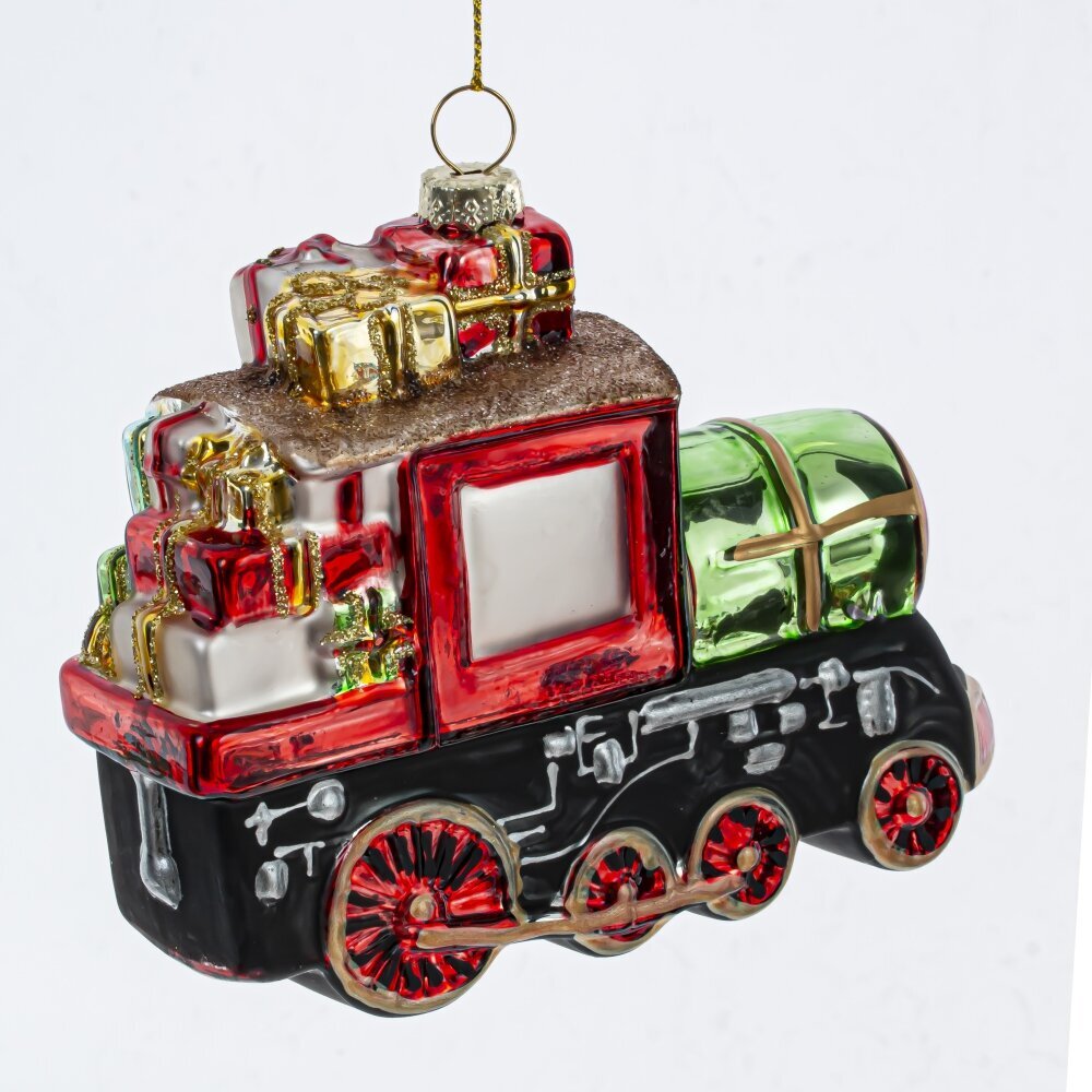 Новогоднее елочное украшение "Поезд" — это стеклянная классическая игрушка, изображающая реалистичный локомотив, который словно сошел с рождественской открытки. Яркие, насыщенные цвета и детализированная отделка делают его настоящим произведением искусства. Поезд щедро нагружен подарками, что символизирует радость и праздничное волнение. Это идеальный элемент декора, который не только украсит вашу елку, но и наполнит дом атмосферой праздника, даря всем тепло и уют в зимние дни.