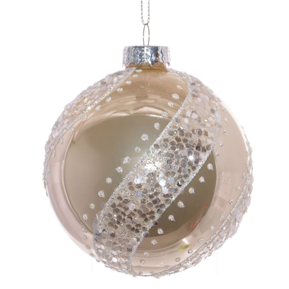 Тонкий, кружевной узор и стразы на новогоднем стеклянном шаре создают настоящее романтическое настроение. Украшение будет прекрасно гармонировать с зеленой хвоей праздничной ели.