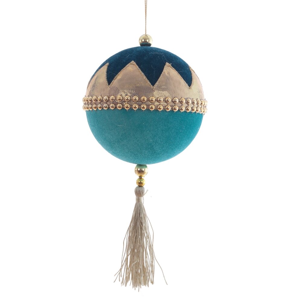 Украшение новогоднее "Шар" в бирюзовом цвете. Изготовлено из пенопласта обтянутого мягким бархатным материалом с дополнительным золотым декором и изящной кисточкой. Станет настоящим украшением любого новогоднего интерьера и принесет в дом атмосферу радости и праздника. И будет отлично смотреться на полке, камине или елочке, добавляя уюта и сказочного настроения!