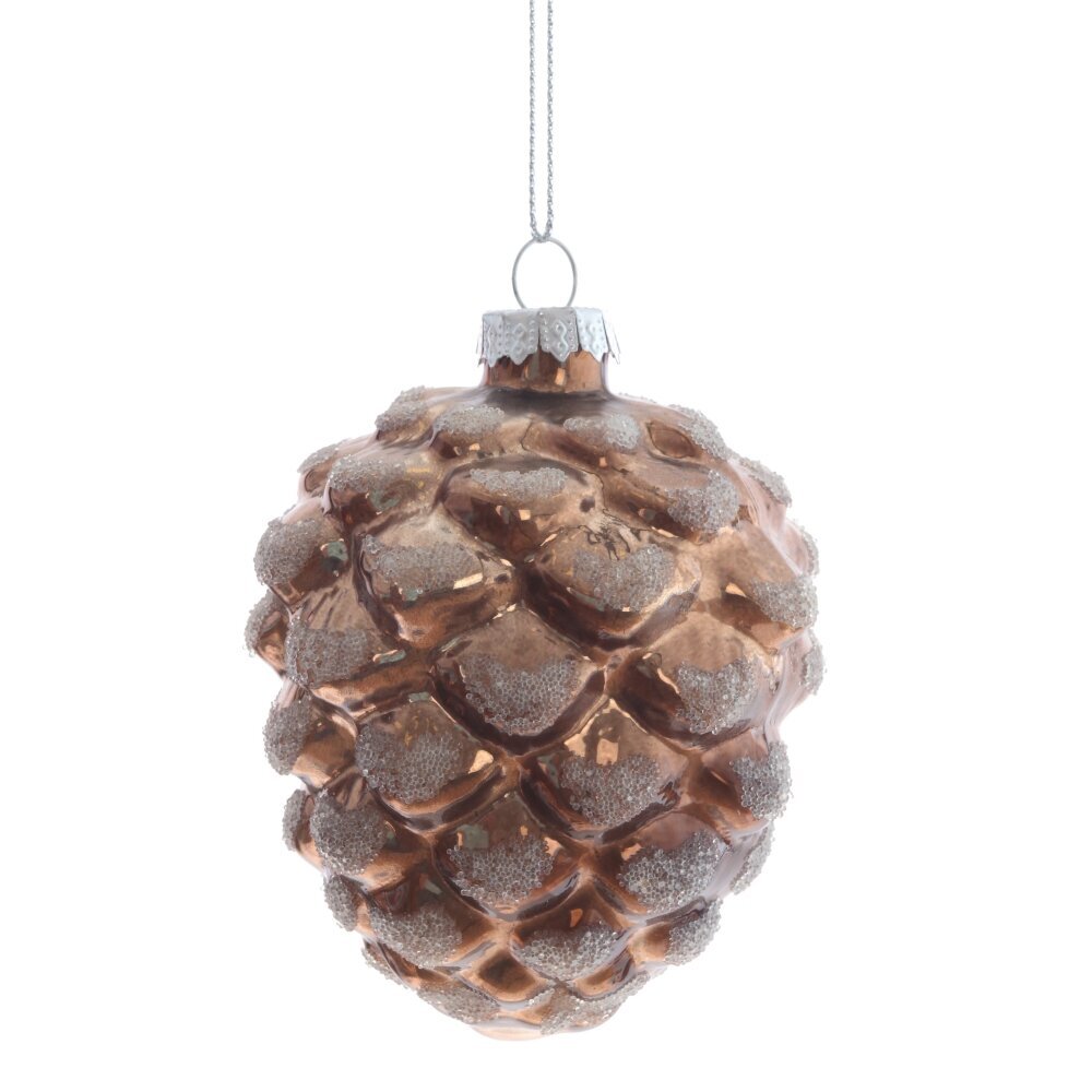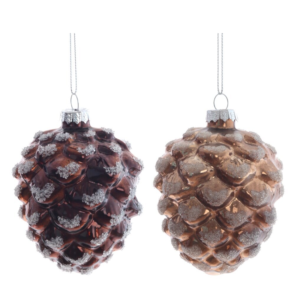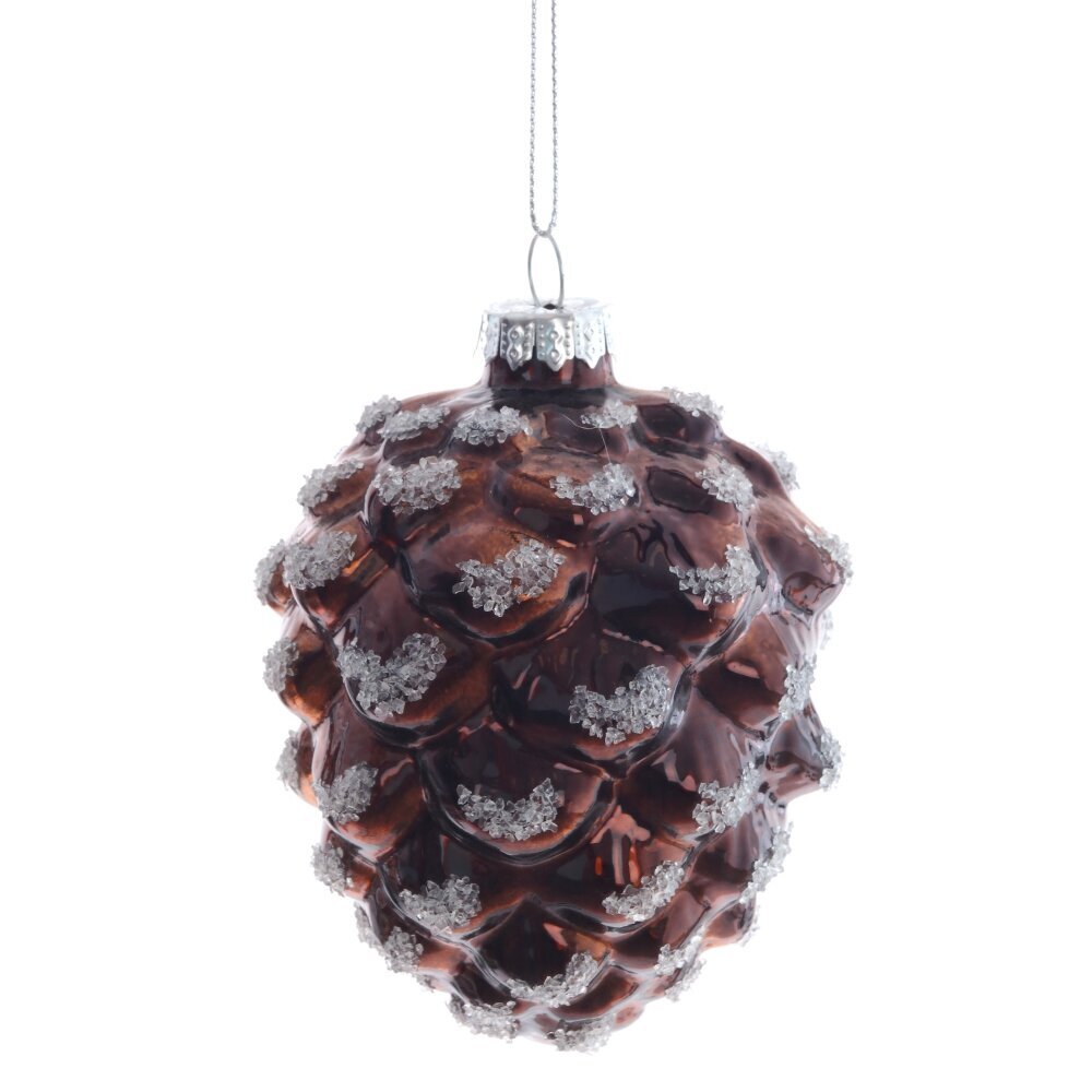 Изящное стеклянное новогоднее украшение в форме округлой шишки сделает вашу елку настоящей красавицей. Шишка припорошена искрящимся снегом, словно из зимней сказки. Венчает эту прелесть золотой колпачок с петелькой для удобного подвешивания. Новогоднее волшебство в каждой детали! Представлена в двух вариантах цвета: коричневом и золотом.