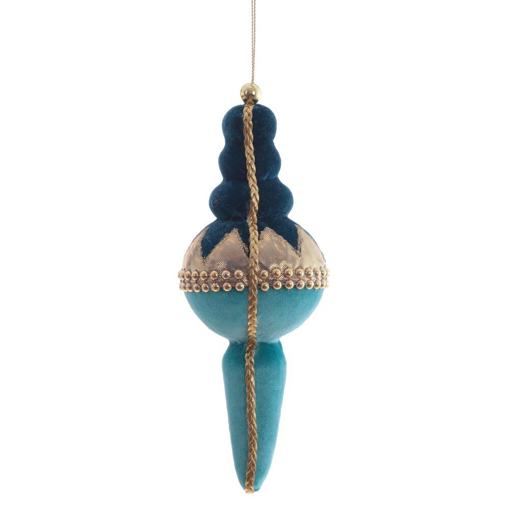 Украшение новогоднее "Сосулька" в красивом бирюзовом оттенке. Этот конический элемент декора изготовлен из пенопласта, обтянутого мягким бархатным материалом с золотыми деталями. Изысканное украшение придаст вашему интерьеру волшебную атмосферу новогоднего праздника и станет ярким акцентом в праздничной композиции..