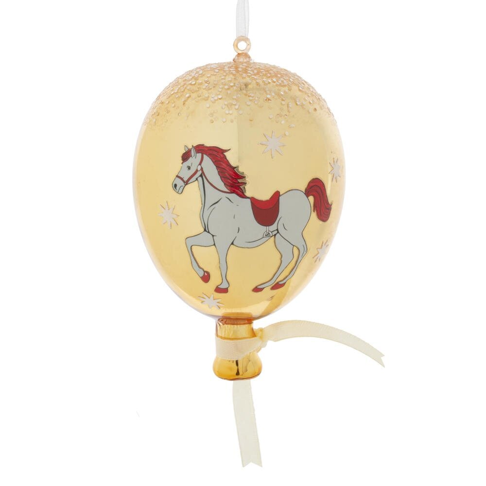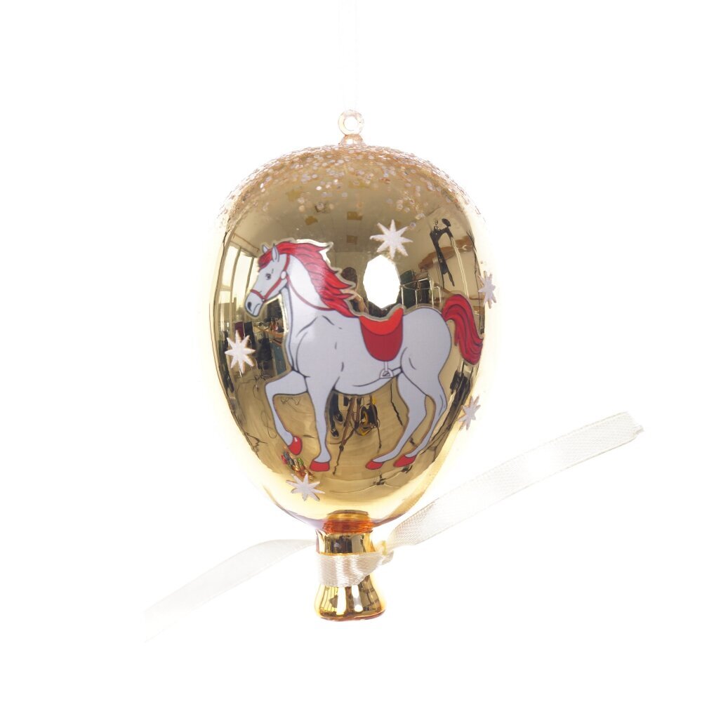 Ёлочное украшение «Воздушный шарик с лошадкой» — волшебный акцент для вашего праздника. Погрузитесь в атмосферу уюта и сказки с этим изысканным ёлочным украшением. Стеклянный шарик украшен изображением лошадки. Его глянцевая поверхность и тонкая роспись придают изделию лёгкость и воздушность.Такой шарик станет не только ярким акцентом на вашей ёлке, но и прекрасным подарком. Подарите себе и близким частичку волшебства с этим оригинальным ёлочным украшением.