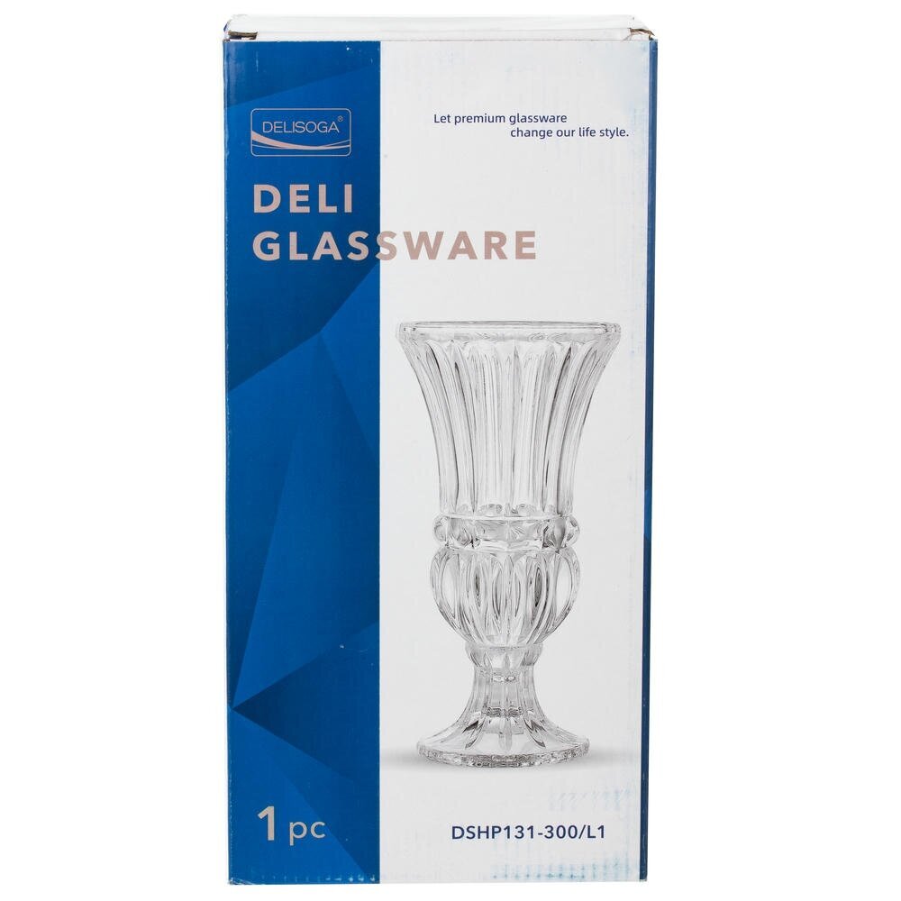Элегантная стеклянная ваза объёмом 1100 мл. Прозрачное стекло с изящным рельефом красиво преломляет свет, создавая игру бликов. Форма кубка с расширяющимся горлышком и утолщённой кромкой подчёркивает изящество, а широкое гранёное основание на ножке придаёт устойчивость. Компактная вместимость делает её идеальной для мини?букетов, веточек зелени, сухоцветов или декоративных наполнителей. Может служить стильным подсвечником для свечи-таблетки либо маленькой конфетницей. Универсальный прозрачный дизайн легко вписывается в классический, скандинавский и минималистичный интерьер, подойдёт для дома, офиса или сервировки праздничного стола и станет приятным подарком. Диаметр горловины: 7.5 см.