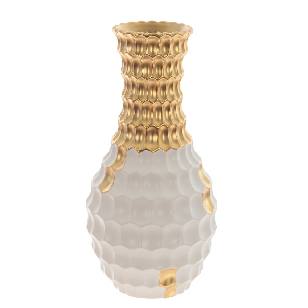 Фарфоровая ваза станет доминантой вашего интерьера. Вместительная и устойчивая, она с легкостью примет в свои объятия пышные букеты из роз, пионов, лилий или других цветов, подчеркнув их красоту. Благородный белый цвет вазы в сочетании с изысканным золотым создает атмосферу роскоши и утонченности. Рельефные элементы переливаются на свету, добавляя вазе очарования. Ваза станет бесценным украшением вашего дома, привнося в него нотку величия и аристократизма. Она прекрасно впишется в классический или современный интерьер. Так же ваза может стать оригинальным подарком для ваших близких и друзей. Диаметр горлышка: 5 см.