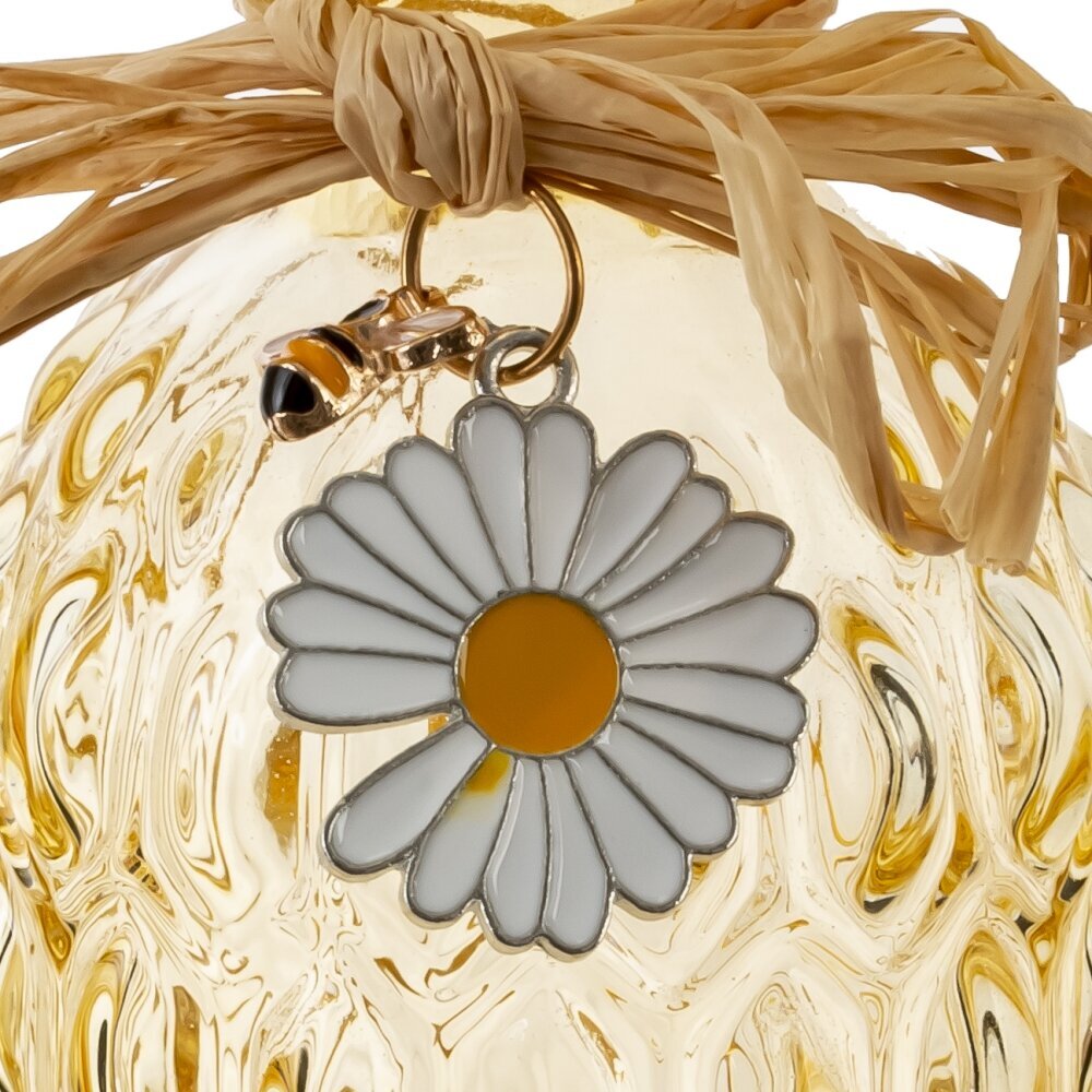 Настольная ваза в форме бутылки станет настоящим акцентом вашего интерьера, привнося в него характер и стиль. Изготовленная из полупрозрачного бежевого стекла, она мягко рассеивает свет, создавая уютную атмосферу в любом помещении. Декоративный шнурок, завязанный симпатичным бантиком на горлышке, в сочетании с милой подвеской в форме цветка с пчелой делают этот предмет уникальным и запоминающимся. Вы можете использовать вазу не только для свежих цветов, но и для создания оригинальных сухих букетов, добавляя сезонные акценты и радуя глаз в любое время года. Ваза прекрасно будет смотреться на полке или кофейном столике, добавляя изюминку в ваш интерьер. Она привлечет внимание и станет обсуждаемым элементом, вызывая интерес у гостей. Этим изделием можно подчеркнуть как современный, так и классический стиль интерьера. Диаметр горловины: 1.5 см.