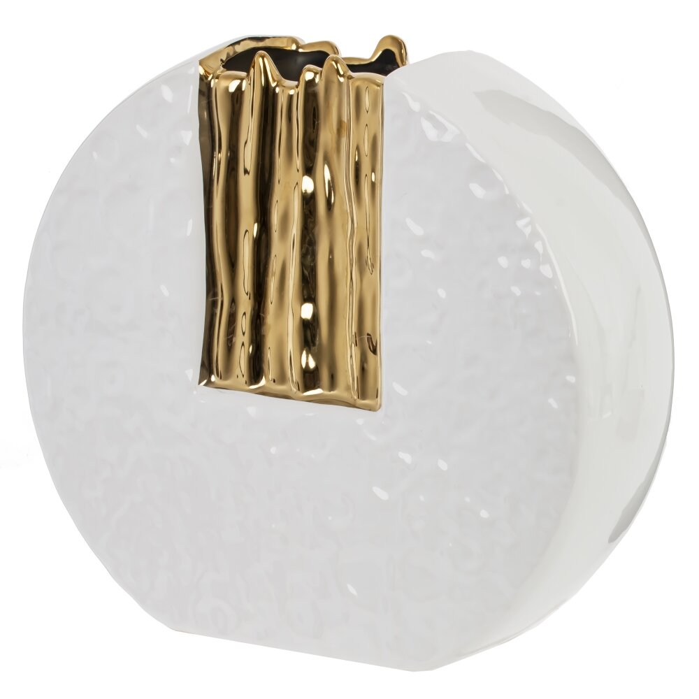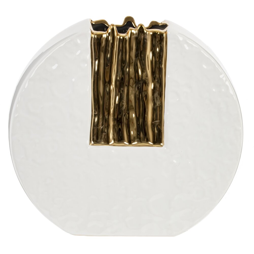 Эта изящная ваза из фарфора станет эффектным акцентом в любом интерьере. Она имеет оригинальную круглую форму, что придает ей особый шарм и выразительность. Белоснежный цвет вазы гармонично сочетается с золотыми элементами, создавая утонченный и стильный оттенок, который прекрасно подходит для классических и современных интерьеров. Ваза может служить как самостоятельным декором, так и идеальным аксессуаром для размещения небольших букетов или сухоцветов. Её компактные размеры делают её универсальной: вы можете разместить её на столе, полке или подоконнике, не занимая много места. Используйте эту вазу, чтобы подчеркнуть ваш уникальный стиль и вкус. Она отлично дополнит любую коллекцию и станет великолепным подарком для ценителей красивых вещей. Добавьте немного элегантности в ваше пространство с этим чудесным аксессуаром. Размер горловины: 8*5 см.