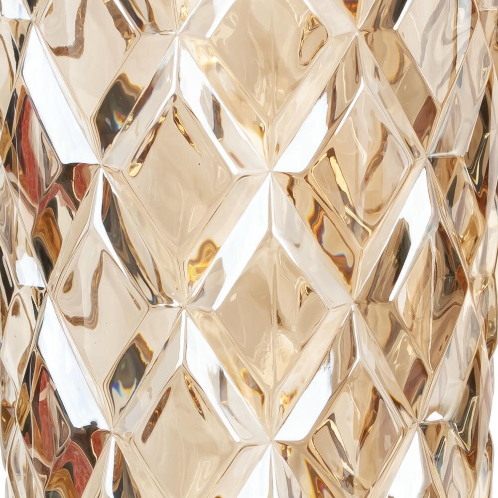 Элегантная декоративная ваза объемом 2100 мл станет эффектным акцентом в интерьере гостиной, спальни или кабинета. Прозрачный стеклянный корпус с рельефными гранями красиво преломляет свет и подчеркивает природную красоту свежих или сухих цветов. Волнистый край добавляет изысканности, а устойчивое металлическое основание с глянцевым золотистым покрытием придает изделию благородный, почти дворцовый характер. Ваза гармонично сочетается с классическим, неоклассическим и современным стилями, подходит как для повседневного использования, так и для сервировки праздничного стола. Прочная конструкция из стекла и металла обеспечивает надежность и долговечность, а также делает вазу достойным вариантом для подарка на новоселье, юбилей или любое торжество. Диаметр горловины: 11.5 см.