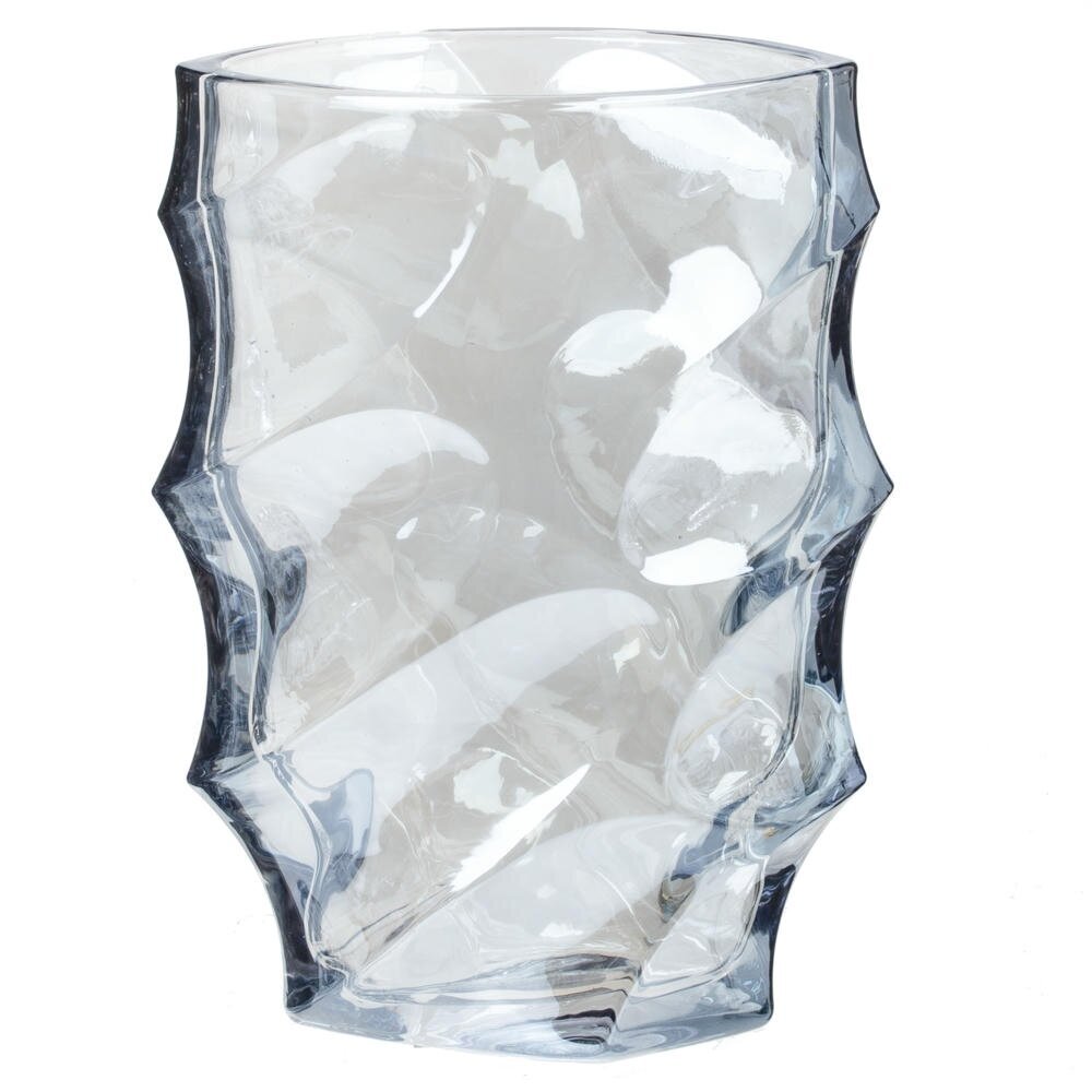 Элегантная стеклянная ваза объемом 550 мл. Изготовлена из прозрачного, толстостенного стекла с выразительным скульптурным рельефом, напоминающим застывшие волны. Цилиндрическая форма с чередованием вогнутых и выступающих граней эффектно преломляет свет, создавая игру бликов. Утолщенное дно придает устойчивость, гладкий круглый край аккуратно обработан. Компактный объем удобен для небольших букетов, одиночных цветков, сухоцветов или декоративных композиций с камешками. Нейтральный прозрачный оттенок легко вписывается в современный, минималистичный или скандинавский интерьер, а также может служить стильной подставкой для кистей и карандашей на рабочем столе. Размер горловины: 10.5*6.5 см.