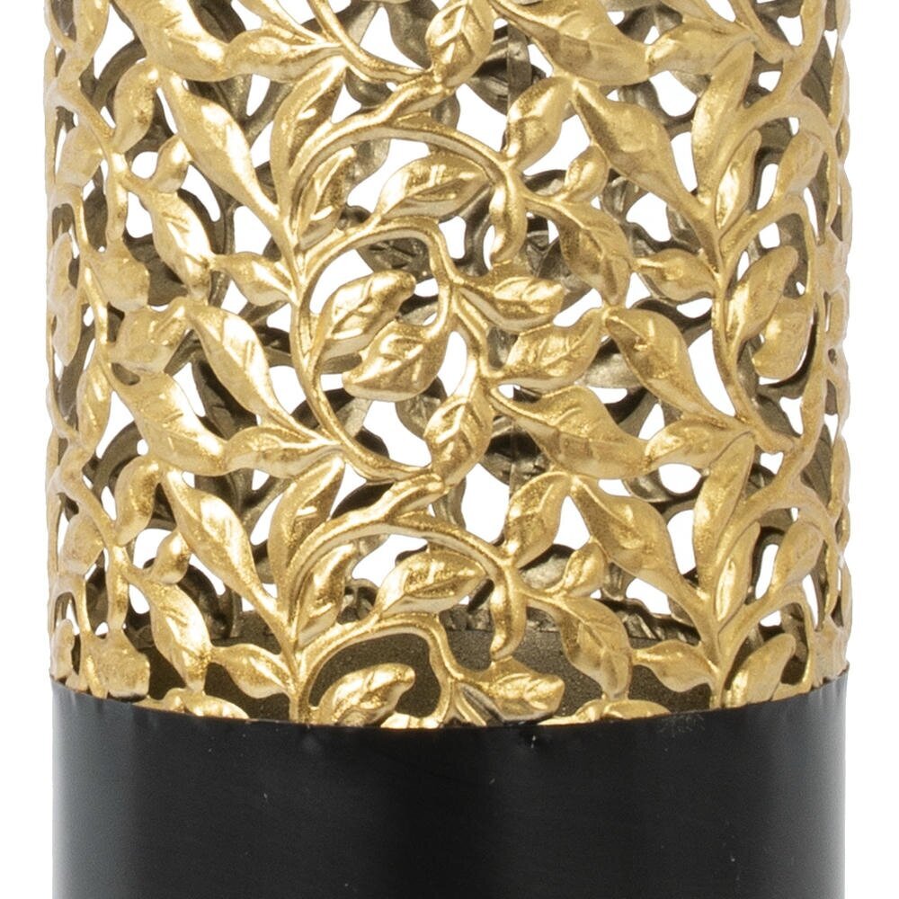 Эффектная напольная ваза для искусственных цветов, выполненная из прочного металла. Высокий цилиндрический корпус (L14,5 ? W14,5 ? H63 см) окрашен в глубокий чёрный цвет, центральная часть декорирована золотистым ажурным орнаментом с растительными мотивами. Контраст чёрного и золота создаёт ощущение роскоши и делает вазу выразительным акцентом в интерьере. Идеально подойдёт для композиции из искусственных цветов, сухоцветов или декоративных ветвей, гармонично впишется в современный, классический или восточный стиль. Станет стильным украшением гостиной, спальни, холла или офисного пространства. Диаметр горловины: 5 см.