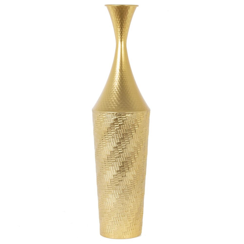 Элегантная напольная ваза для искусственных цветов размером L17,5 ? W17,5 ? H70 см станет ярким акцентом в современном интерьере. Изделие выполнено из прочного металла и покрыто благородным золотистым оттенком. Удлинённый силуэт с плавным сужением к горлышку визуально вытягивает пространство, а фактурная поверхность с рельефным узором красиво отражает свет и подчёркивает декоративные композиции. Ваза идеально подходит для высоких искусственных цветов, веток и декоративных композиций, гармонично вписывается в гостиную, спальню, холл или офис и придаёт обстановке нотки роскоши и изысканности. Диаметр горловины: 3 см.