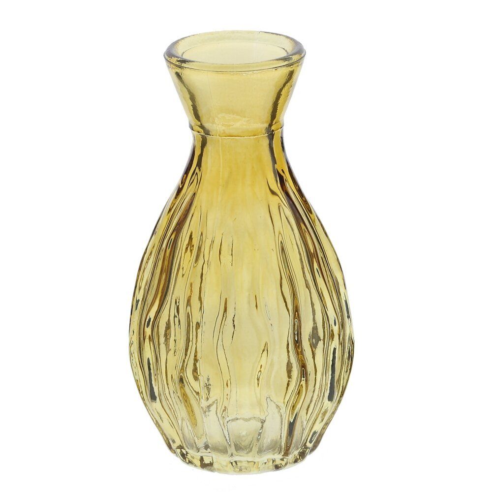 Стеклянная мини-ваза объёмом 100 мл — изящный акцент для вашего интерьера. Выполнена из прочного полупрозрачного стекла тёплого зеленого оттенка. Рельефная волнистая поверхность красиво преломляет свет, создавая мягкое свечение и подчёркивая форму. Узкое горлышко удобно для одной–трёх живых или сухих веточек, небольших букетов, декоративных трав. Компактный размер позволяет поставить вазу на прикроватную тумбу, полку, подоконник или рабочий стол, добавляя уюта даже в небольшом пространстве. Отлично смотрится как самостоятельно, так и в композиции с другими вазами. Диаметр горловины: 1.5 см.